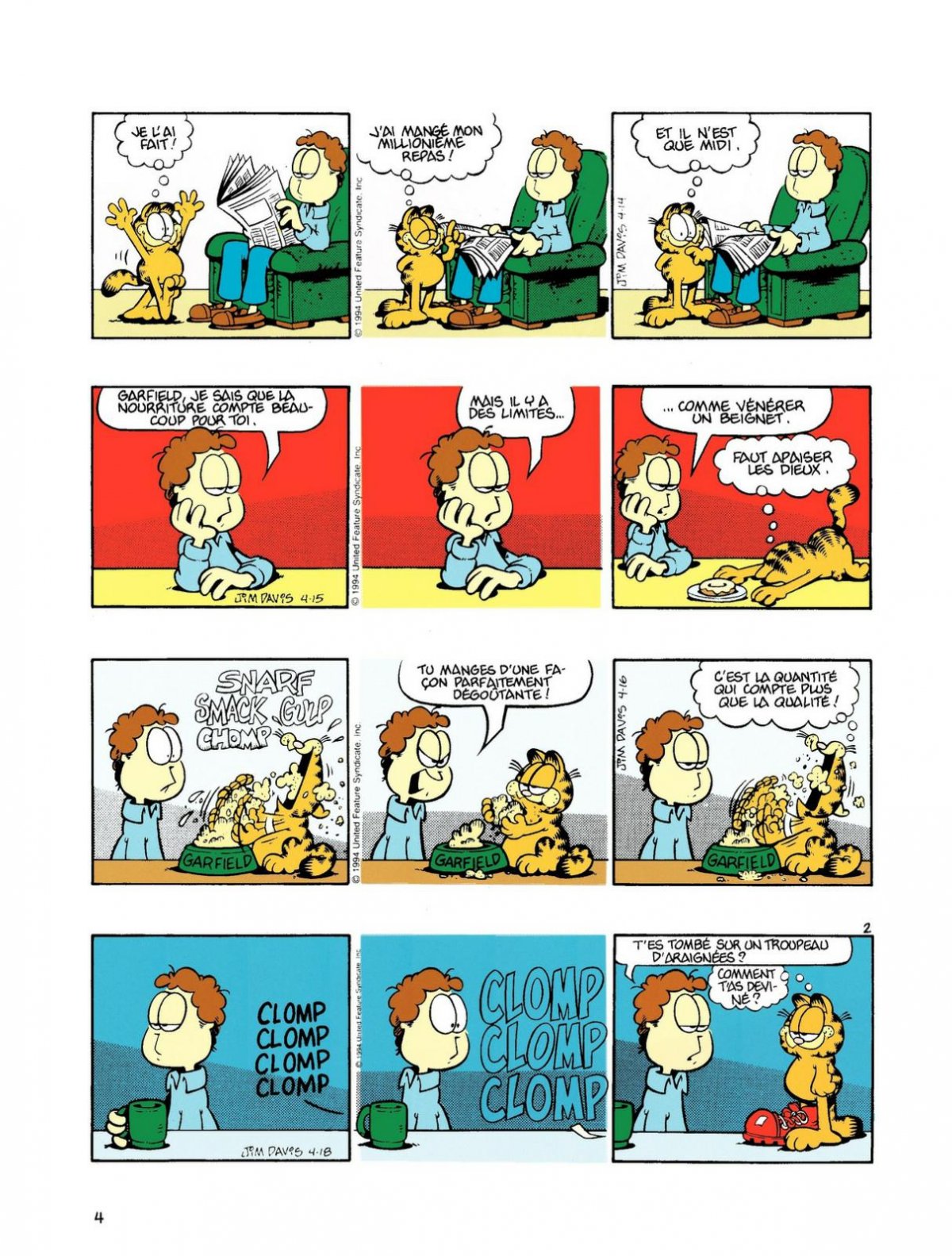 Et comment notre héros prend-il la nouvelle ? Comme d’habitude : à l’horizontale, le ventre en l’air. Il s’est tellement goinfré au déjeuner de six heures qu’il a raté le dîner, et ça l’inquiète : il va peut-être mourir de faim.