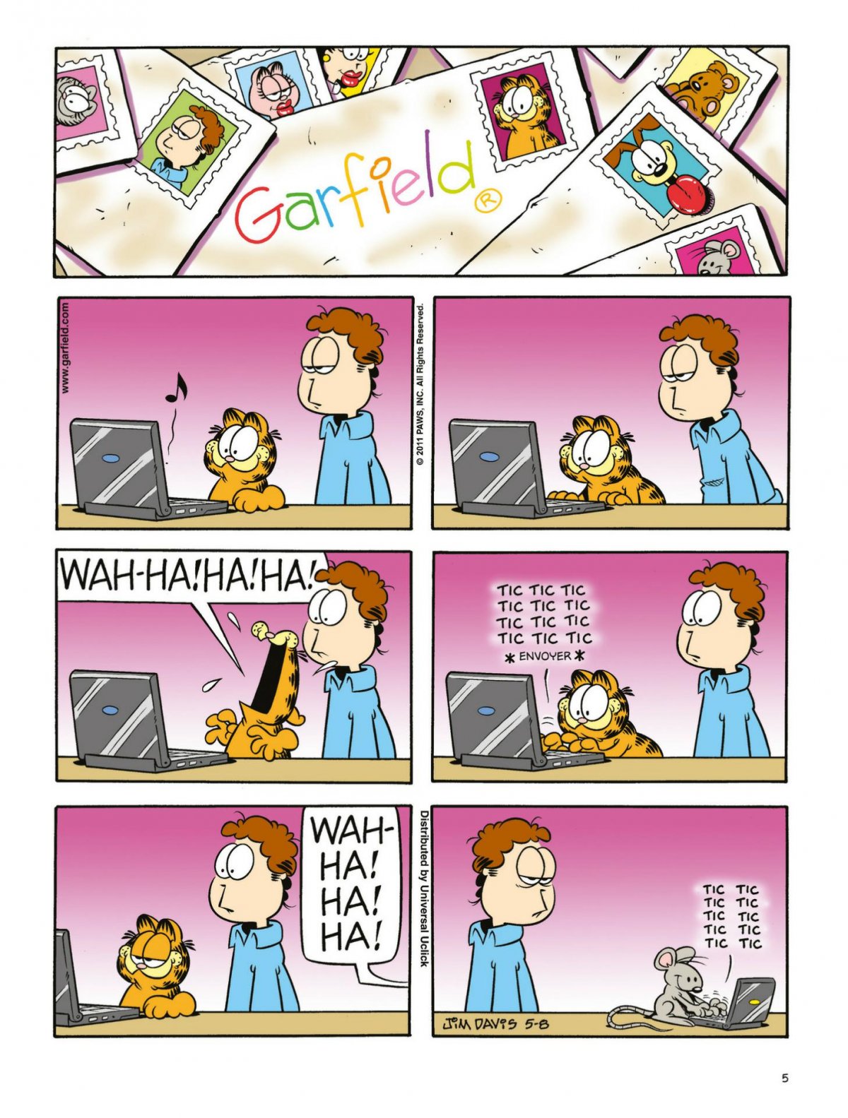 Argh ! Le lundi... quelle HORREUR ! Garfield déteste le lundi. Plus que Nermal, même, c’est dire ! Le lundi est terrible : il revient toutes les semaines, il n’abandonne jamais, impossible de l’éviter. Le lundi, personne n’a envie de se lever et, en plus, il s’y passe toujours quelque chose d’affreux : le facteur ne passe pas, il n’y a pas de lasagnes et, encore pire, il y a toujours quelqu’un pour sortir du lit notre matou préféré ! Bref, vivement le... mardi