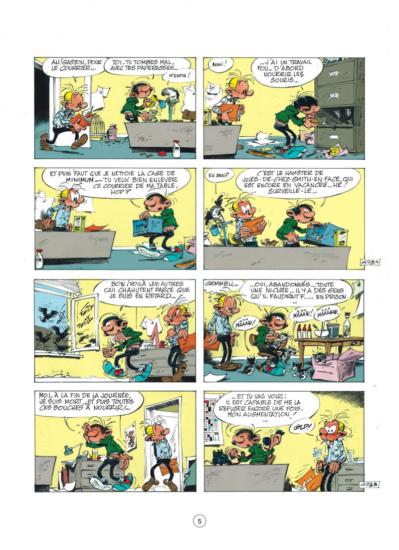 Chat dingue, mouette rieuse, singes de cirque et homard rescapé peuplent l’univers de Gaston, gaffeur invétéré et grand ami des bêtes. Parmi celles-ci, le chat occupe une place de choix : sournois, griffu et chapardeur, il est la bête noire de la rédaction et de M. de Mesmaeker en particulier..