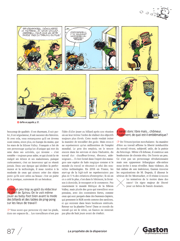 Un employé ingénieux, bienveillant et très paresseux s’est introduit dans la rédaction de Philosophie magazine. Il s’appelle Gaston Lagaffe. Et voilà que Marx, Lévi-Strauss, Arendt et quelques autres se penchent sur son cas... Comment ce poète du bricolage et de la bidouille en est-il venu à incarner une forme de résistance à l’ordre de l’entreprise ? Et quel est le secret de ce rebelle loufoque qui démontre, planche après planche, que l’art de la disruption est né dans les bureaux du journal Spirou bien avant que la Silicon Valley n’en fasse sa marque de fabrique ?