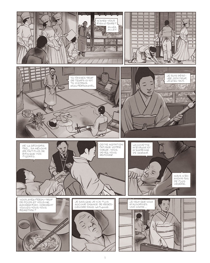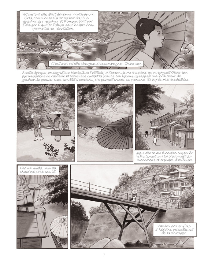 À 18 ans, Setsuko Tsuda est devenue une geisha, son apprentissage terminé. Elle a surtout perfectionné son jeu du shamisen, cette guitare à trois cordes qui accompagne le chant des geisha et dont la mélopée peut s’avérer des plus envoûtantes quand on en joue divinement. Mais pour le moment c’est à la montagne qu’elle exerce son art. Elle accompagne Okaa-san, la geisha qui l’a formée, gravement malade et contagieuse, qui tente de se remettre de son mal. Loin de l’okiya, Setsuko fait le point sur sa jeune existence. Car elle traverse une mauvaise passe depuis quelque temps. Elle ne progresse plus au shamisen, les clients la trouvent distante et elle a moins d’engagement. Est-elle déjà lasse de son métier ? À l’auberge où elle réside, elle rencontre Shuji Ariyoshi, étudiant en littérature française à Tokyo, qui veut devenir écrivain, dont la fantaisie et la joie de vivre la fascine.
