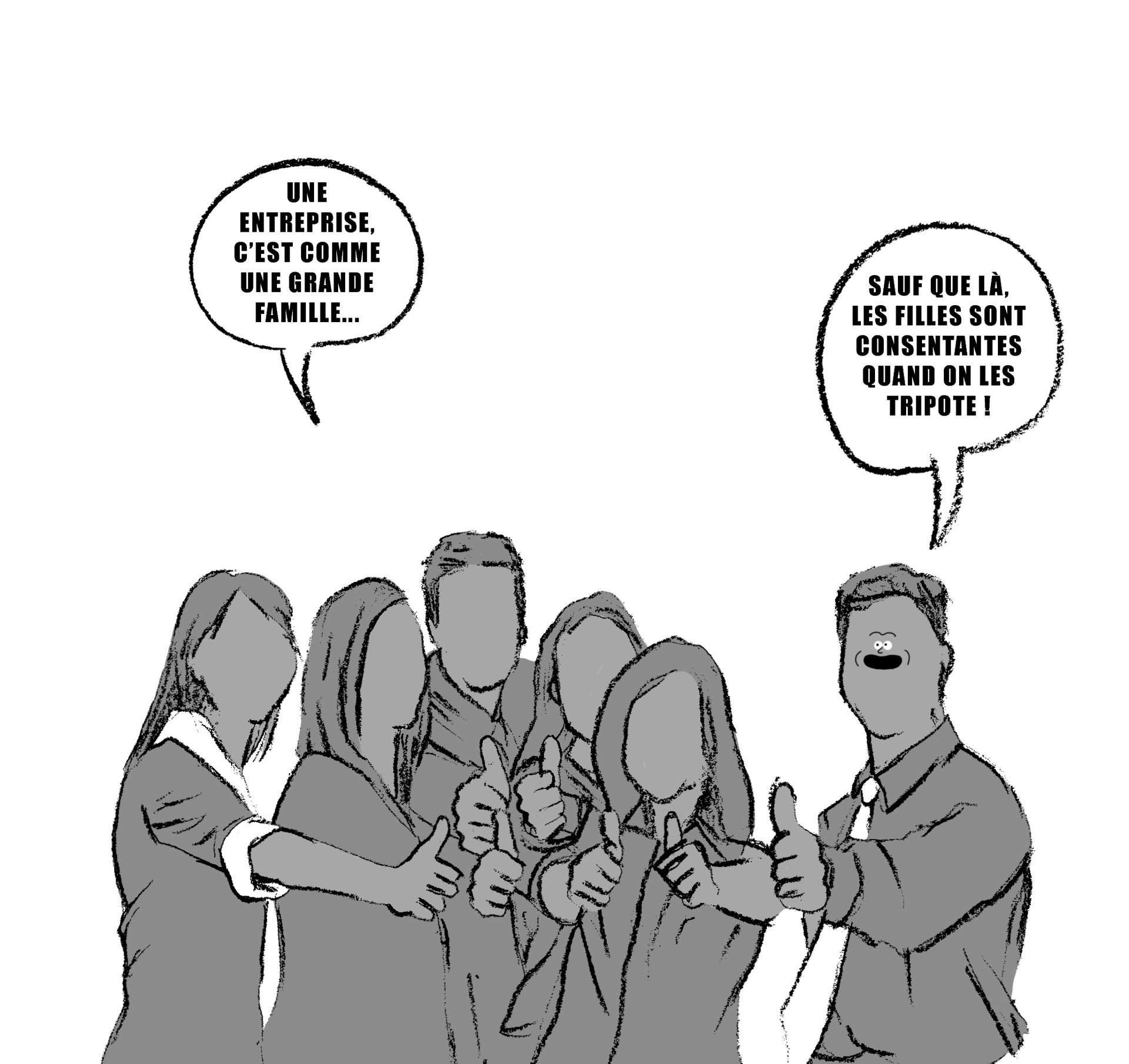 Une série de dessins humoristiques qui parle du harcèlement, de la machine à café, de la pression au boulot, des rapports de hiérarchie, des petites mesquineries entre collègues, des RTT, de la DRH, des petits chefs, de la photocopieuse, des stagiaires, du suicide en milieu professionnel...