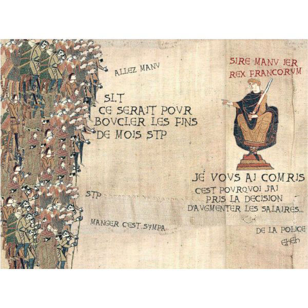 Geste du roi Manu 1er de Fronce (La) est un album oneshot de Les Belles Tapisseries autogérées, paru en 2019. Selon nos informations, il n'en existe qu'une seule édition, publiée par Lapin.