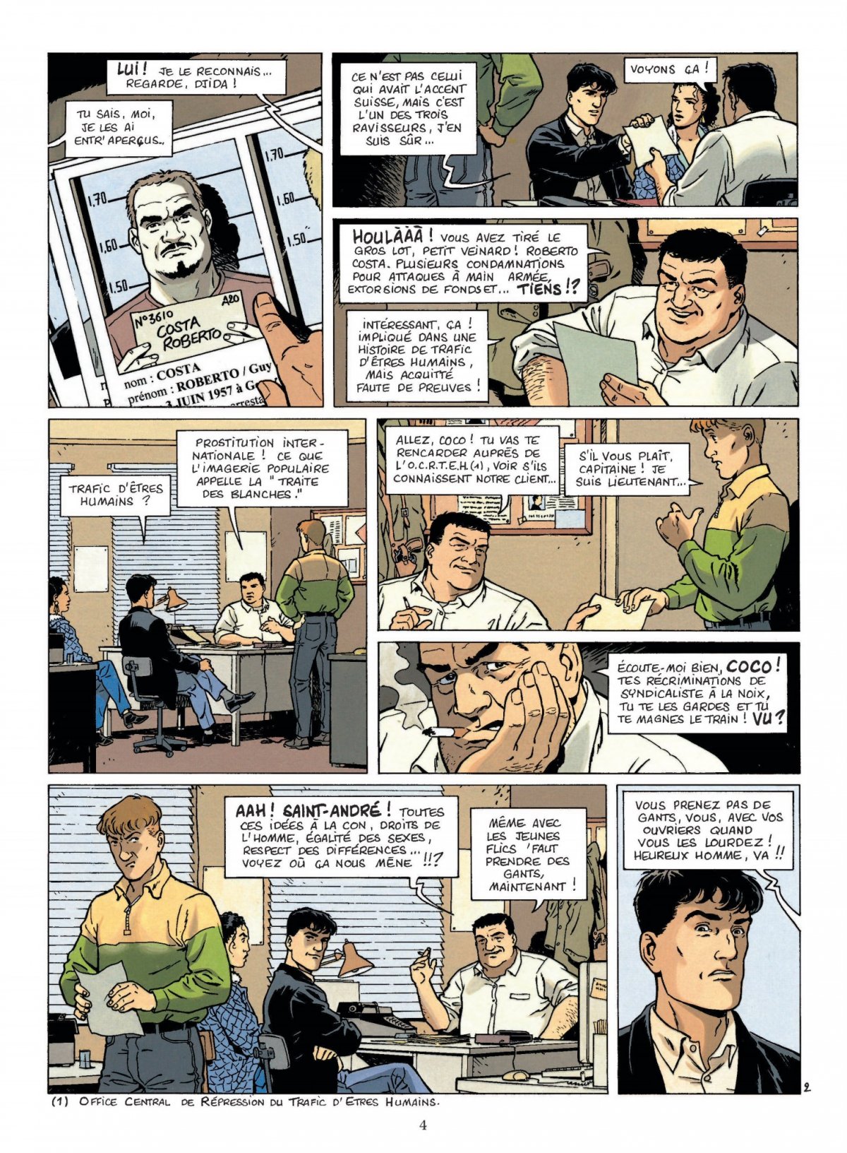 Aidé dans ses recherches par la belle inspectrice Djida Feschaoui, Gil Saint-André recherche toujours sa femme disparue mystérieusement. Tout porte à croire que celle-ci avait une soeur jumelle, elle aussi kidnappée, dont on lui avait caché l’existence. Pour éclaircir ce mystère Saint-André va interroger sa belle-mère mais celle-ci meurt, assassinée ! Gil est soupçonné du meurtre et la police, qui jusque là s’était montrée scandaleusement passive, va devenir un nouveau danger... Chaque épisode de cette série apporte son lot d’indices à l’enquête que mène notre héros, tout en développant une petite intrigue dont le dénouement se boucle en un album. Cette structure en épisodes autonomes reliés les uns aux autres par une enquête à lon g terme est une des clefs du succès de cette série, véritable fer de lance de la nouvelle collection Bulle Noire.