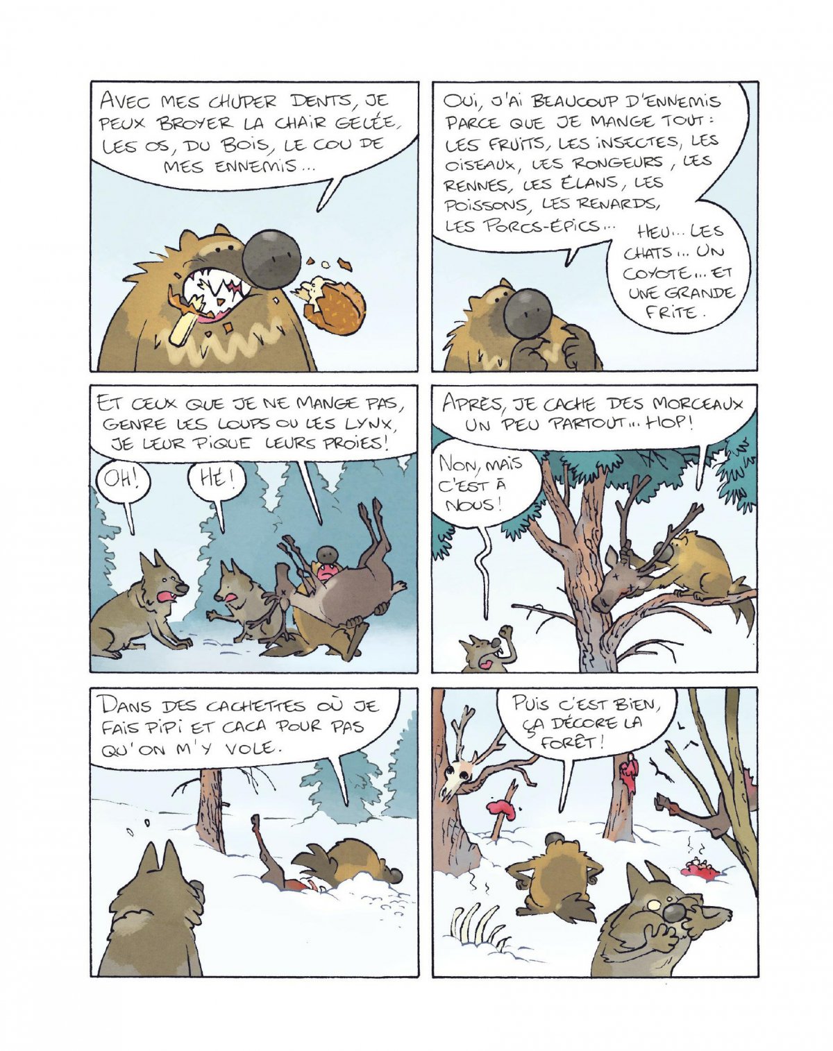 Pourtant, on aurait pu croire les prédateurs nombreux sur la banquise : ours, loups... Mais si personne n’a jamais pu vérifier ni la force ni l’habilité de Glouton à la baston, c’est qu’il y a une raison : face à cette teigne et ce bonimenteur de génie, personne ne résiste