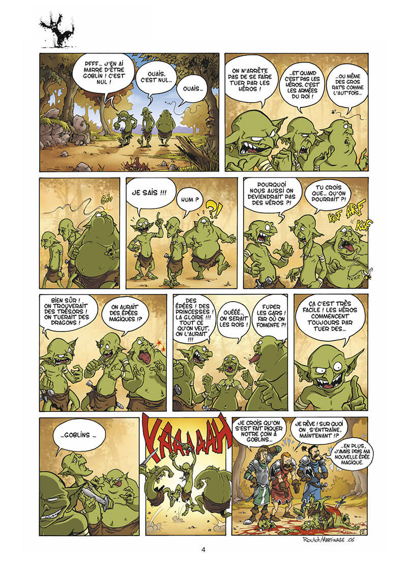 Ils seraient parfaits pour votre dîner de cons du mercredi, pour faire cibles vivantes à l’anniversaire de votre fils, ou comme sujet d’étude pour votre théorie sur les rapports entre malchance et stupidité. Ils sont petits, verts, nombreux, et il n’y en a pas un pour rattraper l’autre... Agressifs, stupides, mais pleins de bonne volonté et d’idées, ce sont les bizuths de l’heroic fantasy : cibles d’entraînement pour aventuriers débutants, jouets des enfants trolls et cure-dents pour les dragons. Ils devront déployer des stratégies toujours plus loufoques pour tenter de survivre au funeste destin qui les attend à chaque page. Autant le dire, ce n’est pas gagné !