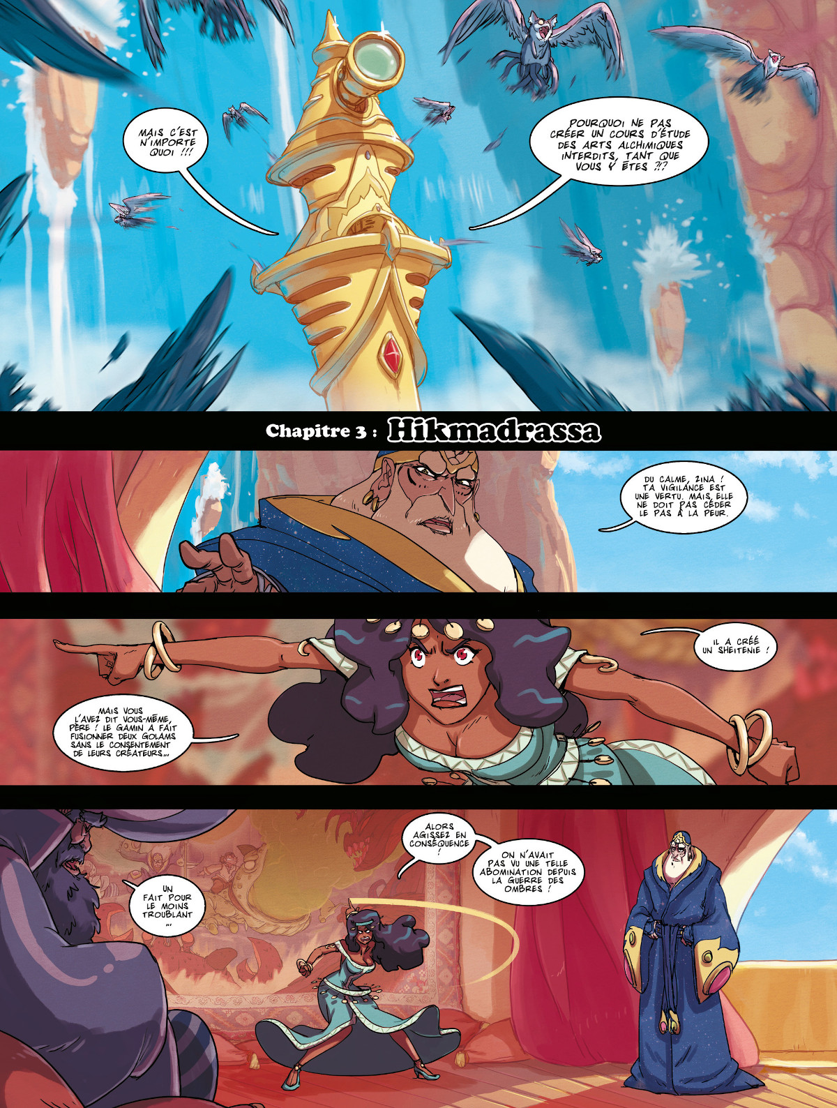 Après un examen d’entrée des plus mouvementés, Mehdi n’a qu’une idée en tête : partir le plus vite possible de cette école de fous ! Mais personne n’entre à Hikmadrassa par hasard. Et si le jeune homme n’a manifestement pas le moindre talent alchimique ni l’envie d’aller en cours, il comprend vite que cet endroit magique renferme peut-être le secret de ses origines. et ses premiers véritables amis ! Alors, lorsque le danger guette, tous se dressent et sortent leurs Golams pour des duels hauts en couleurs entre ces créatures fantastiques !