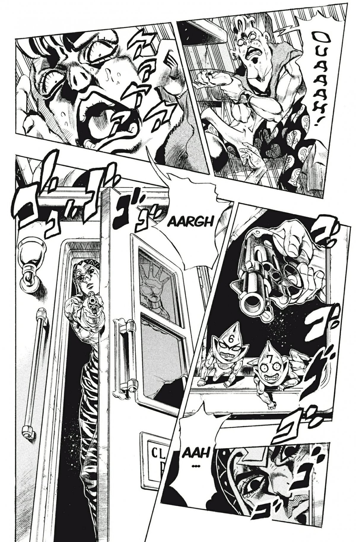 Giorno et son groupe sont en bien mauvaise posture. À moins que Mista ne découvre qui manipule le stand, ils vont tous mourir desséchés. Leur seule chance est, qu’avec Buccelati, ils se montrent plus malins que lui et arrivent à le faire sortir de sa cachette. Mais le temps leur est compté et ils doivent prendre des risques insensés pour réussir !