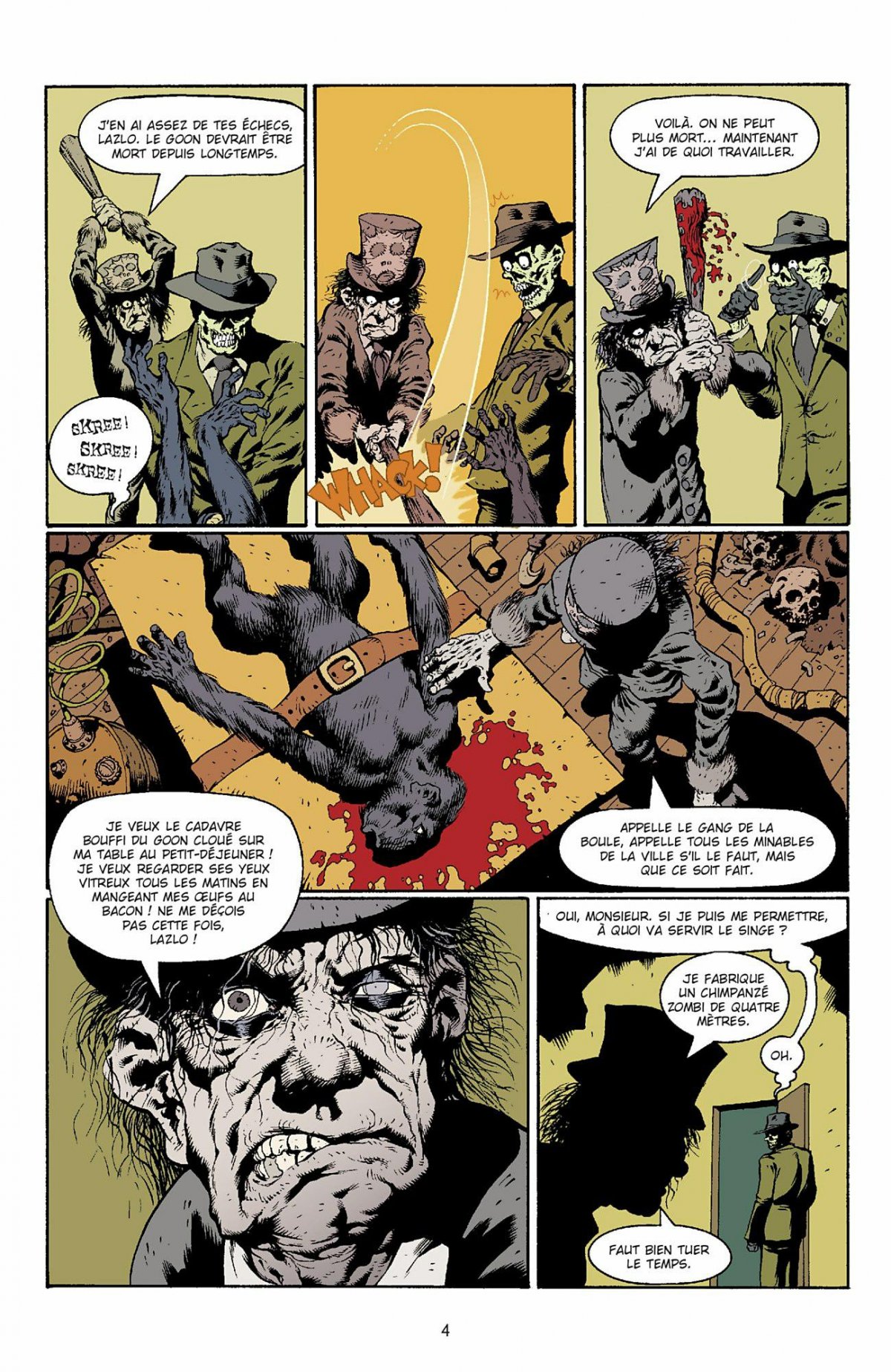 Accompagné de Franky, son meilleur ami depuis la plus "tendre" enfance, le Goon est le seul capable de rétablir un semblant d’ordre dans ce drôle d’univers pris de folie. Car même ceux qui sont déjà morts craignent le Goon ! Mélange d’horreur et d’humour, Le Goon s’impose comme le demi-frère d’Hellboy, dont les enquêtes sont relatées dans la série éponyme chez le même éditeur, et le rejeton improbable de la Famille Addams.