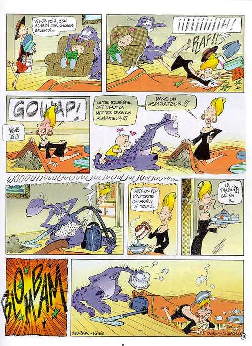 Le Gowap, ce malicieux « dinosaurien » dévaste la maison et la vie de la délicieuse petite Géraldine. Faisant preuve d’un appétit colossal et doté d’un solide estomac, il ingurgite tout et n’importe quoi. Il accumule surtout maladresses sur maladresses et gaffes sur gaffes dans une bonne humeur communicative !