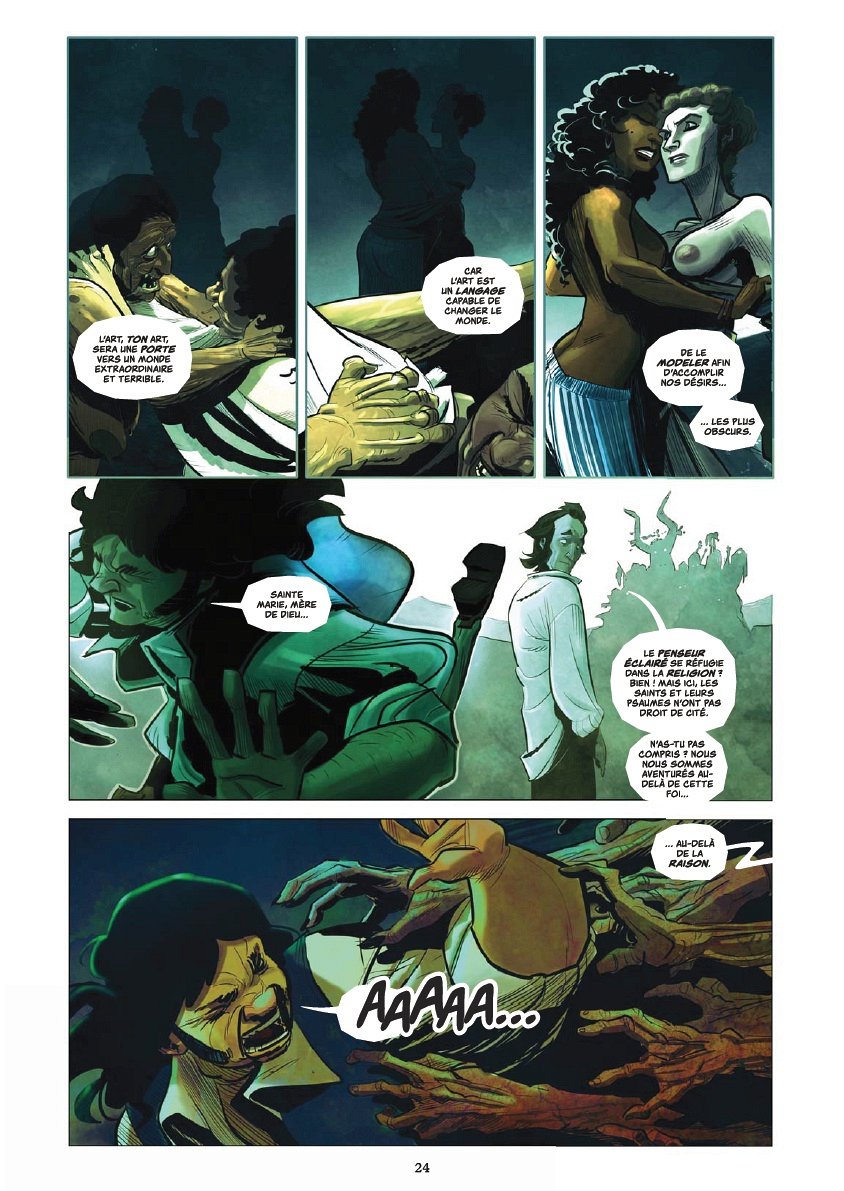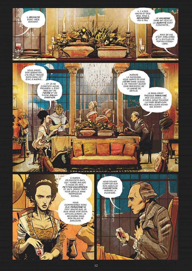 Un roman graphique magnifique aux reflets flamboyants qui nous invite à partager les tourments et l’univers fantasmé d’un des artistes majeurs de la peinture espagnole. Une oeuvre originale à mi-chemin entre fiction et histoire, qui nous permet de mieux comprendre une période sombre de la vie de ce peintre de génie.