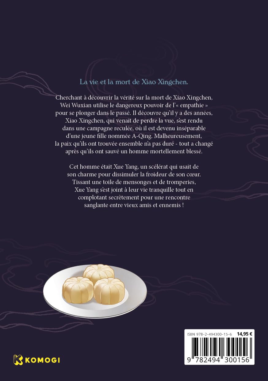 Cherchant à découvrir la vérité sur la mort de Xiao Xingchen, Wei Wuxian utilise le dangereux pouvoir de l’« empathie » pour se plonger dans le passé. Il découvre qu’il y a des années, Xiao Xingchen, qui venait de perdre la vue, s’est rendu dans une campagne reculée, où il est devenu inséparable d’une jeune fille nommée A-Qing. Malheureusement, la paix qu’ils ont trouvée ensemble n’a pas duré - tout a changé après qu’ils ont sauvé un homme mortellement blessé. Cet homme était Xue Yang, un scélérat qui usait de son charme pour dissimuler la froideur de son cÅ’ur. Tissant une toile de mensonges et de tromperies, Xue Yang s’est joint à leur vie tranquille tout en complotant secrètement pour une rencontre sanglante entre vieux amis et ennemis !