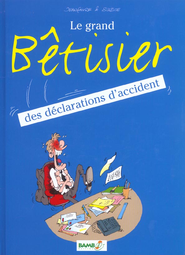 Grand bêtisier des déclarations d’accidents (Le) est le volume 1 de la série Grand bêtisier des déclarations d’accidents (Le) par Olivier Sulpice et Henri Jenfèvre, paru en 2000. Selon nos informations, il n'en existe qu'une seule édition, publiée par Bamboo.
