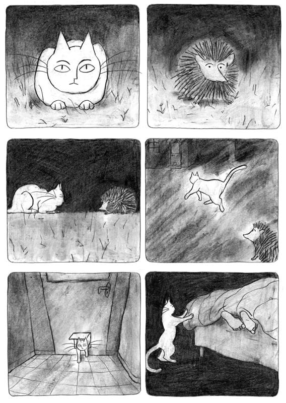 Loulou et Nana vivent seules avec leur mère dans un petit pavillon de campagne. C’est les vacances, l’ambiance est au désoeuvrement général. Les journées s’organisent au rythme des repas et le gros des interactions se déroule autour de la table du salon. À l’exception du petit copain de Nana, l’unique présence masculine c’est « ?Chacha ? », le chat de la maison. Attention, il ne s’agit pas de n’importe quel animal de compagnie, c’est un félin doué d’expression. En aparté, il peut comprendre et communiquer avec Nana. Mais ce n’est pas la seule à personnifier la petite bête, toutes les trois entretiennent avec lui une relation pour le moins ambigüe faite de jalousie et de convoitise. La légère mesquinerie du matou va bientôt attiser crispations et suspicions au sein de la maisonnée. « ?Gratin de chat ? » figure de manière audacieuse les préoccupations adolescentes et familiales à travers le portrait d’une mère et de ces deux filles. Dans ce récit où les non-dits submergent les personnages, la parole se révèle plus que jamais essentielle. C’est la première bande dessinée d’Adèle Maury, lauréate en 2020 du Prix « ?Jeune talent ? » au Festival d’Angoulême. Elle termine actuellement un master BD et édition à L’Institut Saint-Luc de Bruxelles.