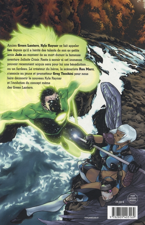 Ancien Green Lantern, Ryle Rayner se fait appeler Ion depuis qu’il a hérité des talents de son ex-petite amie Jade au moment de sa mort durant la fameuse aventure Infinité Crisis. Reste à savoir si cet immense pouvoir récemment acquis sera pour lui une bénédiction... ou un fardeau. Le créateur du héros, le scénariste Ron Marz, s’associe au jeune et prometteur Greg Tacchini pour nous faire découvrir le nouveau Ryle Rayner et l’évolution du concept même des Green Lantern.