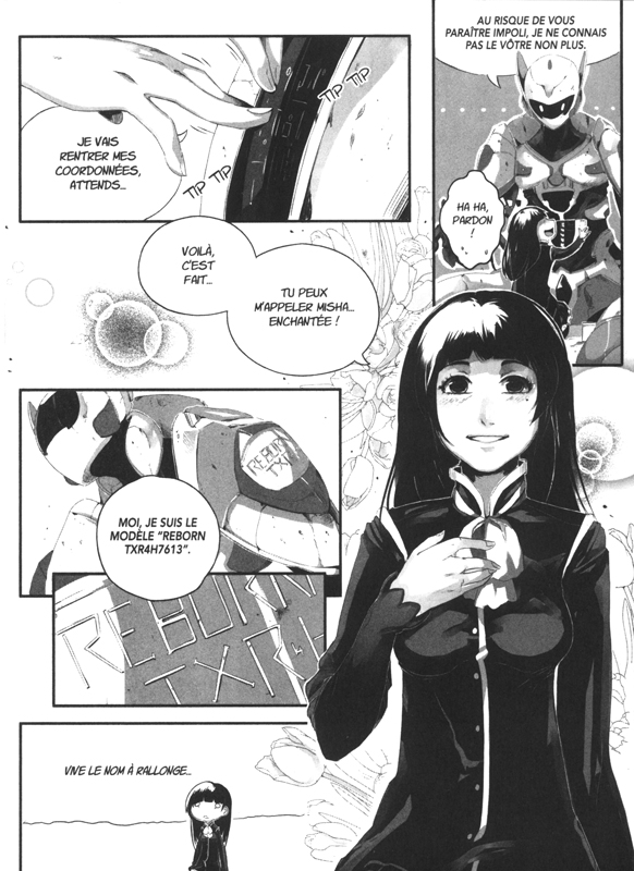 Cette merveille technologique est capable d’adopter n’importe quelle apparence. Sans hésiter, la jeune fille lui fait prendre la forme de Mickael, son meilleur ami, dont elle est sans nouvelles depuis qu’il a été enlevé par un groupe d’Ersatz il y a dix ans. D’où viennent ces créatures ? Que deviennent ceux qu’elles capturent ? Nul ne le sait... Pour retrouver son compagnon, Misha rejoint les Renforts, un groupe de guerriers et d’enquêteurs hors pair ! En échange de leur aide, elle met à leur service ses capacités psychiques et son aptitude à faire de Reborn une armure surpuissante. Le combat pour la vérité commence !