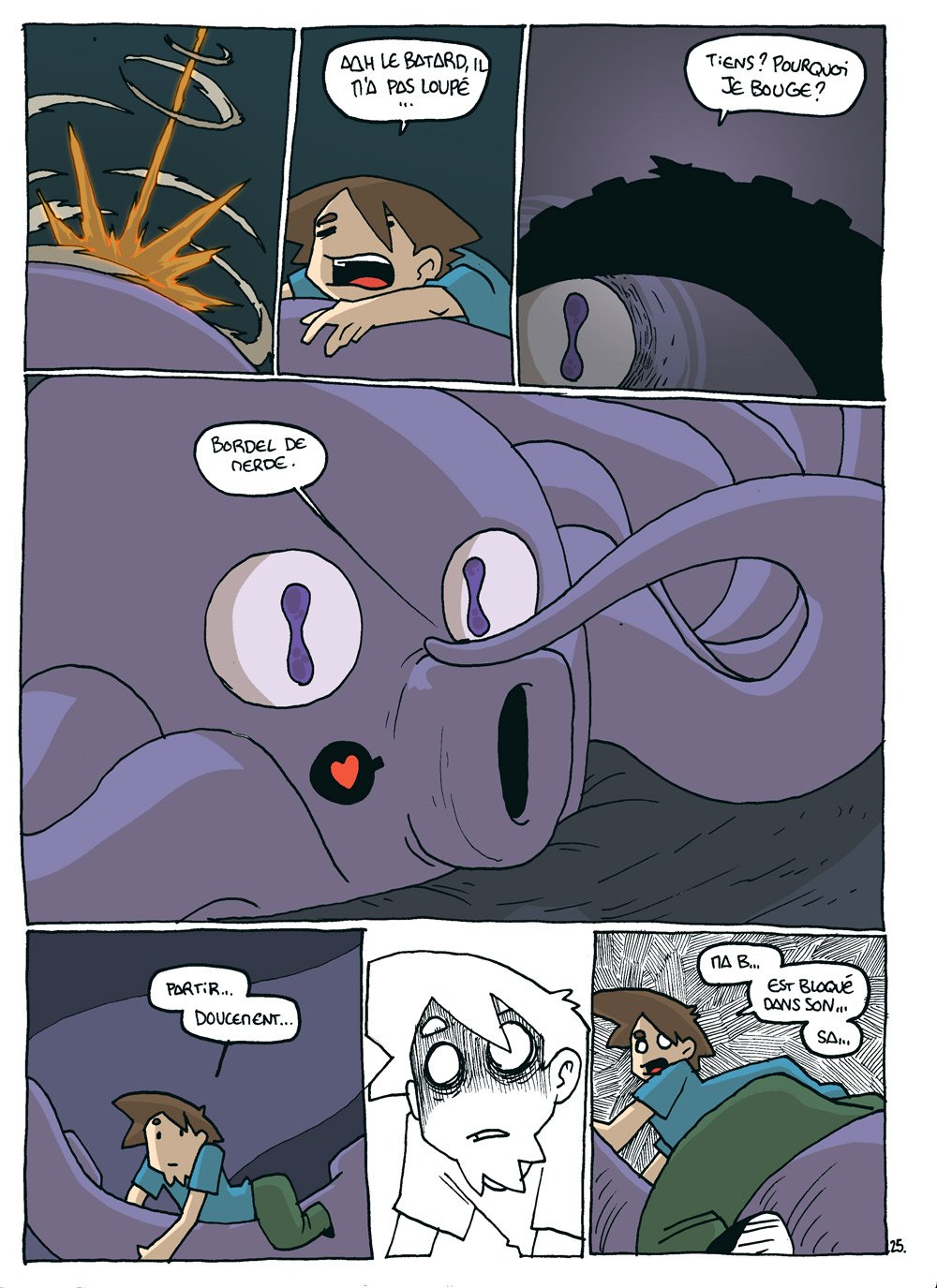 Le héros préféré quoiqu’un peu trash des ados revient avec un nouvel opus qui repousse encore les limites fragiles de l’absurde et de la digression. Loin de la BD classique, Grim est un voyage entre des strips délirants références aux jeux vidéos et à la culture contemporaine de l’internet et l’auto-exégèse du livre entrecoupée de nombreuses digressions. Grim revient, et maintenant, il est en livre et en DVD.