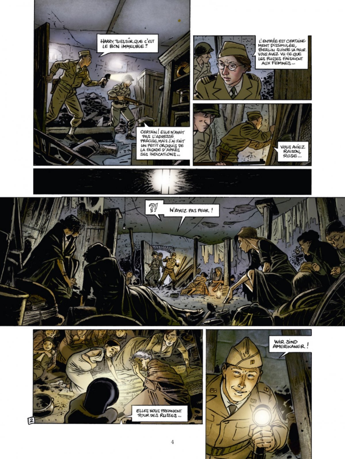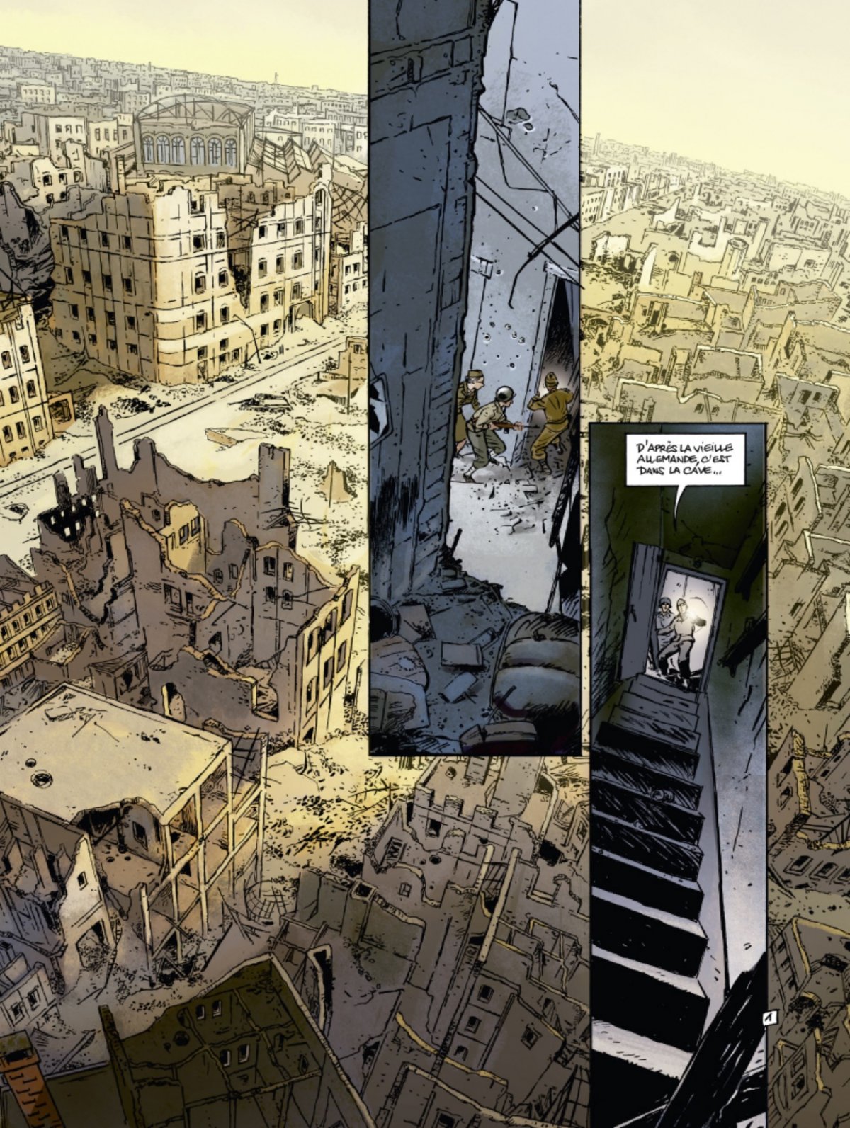 13 juillet 1945. Les troupes Alliées parcourent les ruines de Berlin encore fumantes. Parmi les forces américaines, Walter fait partie de la MFAA, autrement appelée la division des « Monuments Men ». Sa mission : explorer ce qu’il reste des lieux culturels de la capitale pour tenter de sauver les oeuvres d’art épargnées par les bombes. En effet, dès 1940, Hitler avait pillé l’Europe entière de ses chefs-d’oeuvre pour la création d’un musée à sa gloire. Et ce sont des Vermeer, Van Eyck, Lautrec et autres Picasso qui se cachent ainsi sous les décombres. Un trésor qui fait des envieux, car les troupes russes se livrent également à une chasse à l’art. Et Walter ignore que celle qui est à la tête de la « Mission trophée » ordonnée par Staline n’est autre que... son ancien amour, Natalia !Jack Manini et Olivier Mangin concluent leur ambitieux triptyque La Guerre des amants : une romance passionnée où l’art devient une arme à double tranchant, dont le tome 1 a reçu le Prix Historia de la BD historique. En fin d’ouvrage, un cahier pédagogique de 8 pages rédigé par l’historienne Emmanuelle Polack, éclaire le contexte évoqué dans cet album, à savoir les oeuvres d’art volées par les Nazis avant la seconde guerre mondiale.