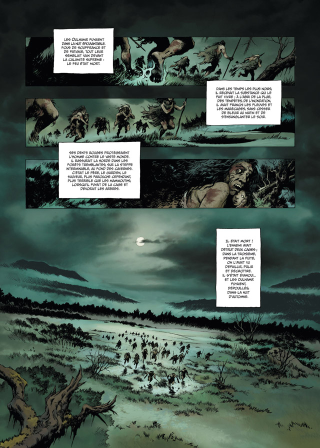 Fous de terreur et de désespoir, les Oulhamrs fuient dans les ténèbres de la nuit : le feu est mort, détruit par les ennemis de la horde. Pour la survie de la tribu et l’amour de la belle Gammla, Naoh, le fils du Léopard, se voue à reconquérir le feu. Une grande quête débute, au coeur d’un univers de titans, où les aurochs et les mammouths, les ours et les lions géants sont les maîtres de la Terre.