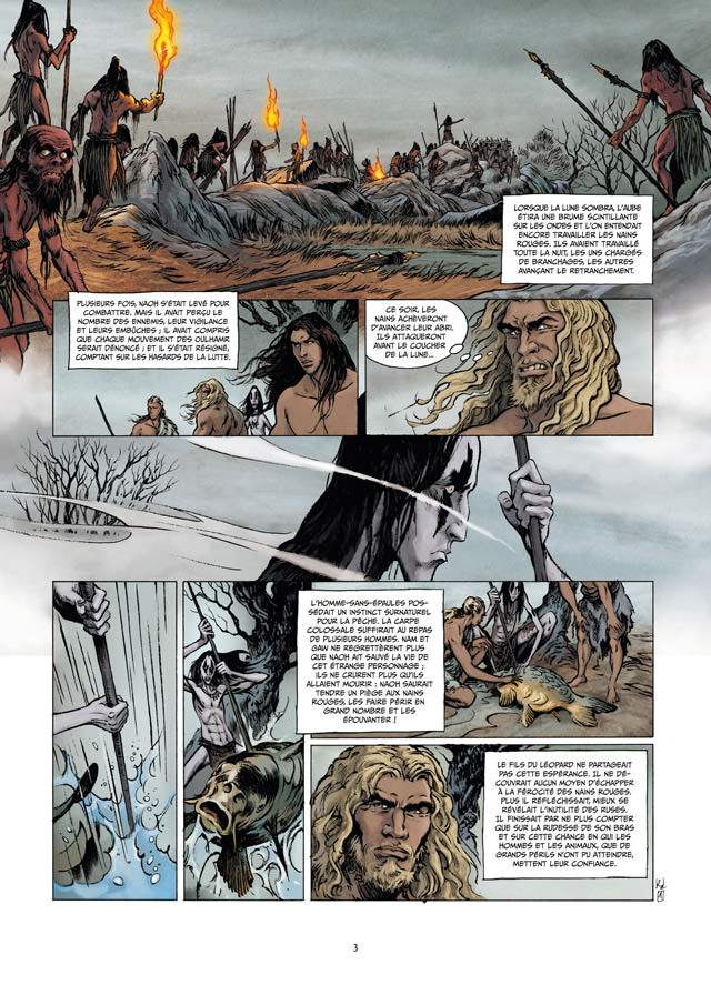 Naoh, Naw et Gaw ont réussi à garder le feu et se sont assuré l’alliance des mammouths, mais l’accalmie n’est que passagère. Les vivres à disposition ne cessent de diminuer et de nouveaux ennemis se présentent à eux... les nains rouges ! Dernier tome de l’adaptation du chef-d’oeuvre de J.-H. Rosny aîné. Un hymne à la préhistoire réalisé par un spécialiste, Emmanuel Roudier, l’auteur de Neandertal.