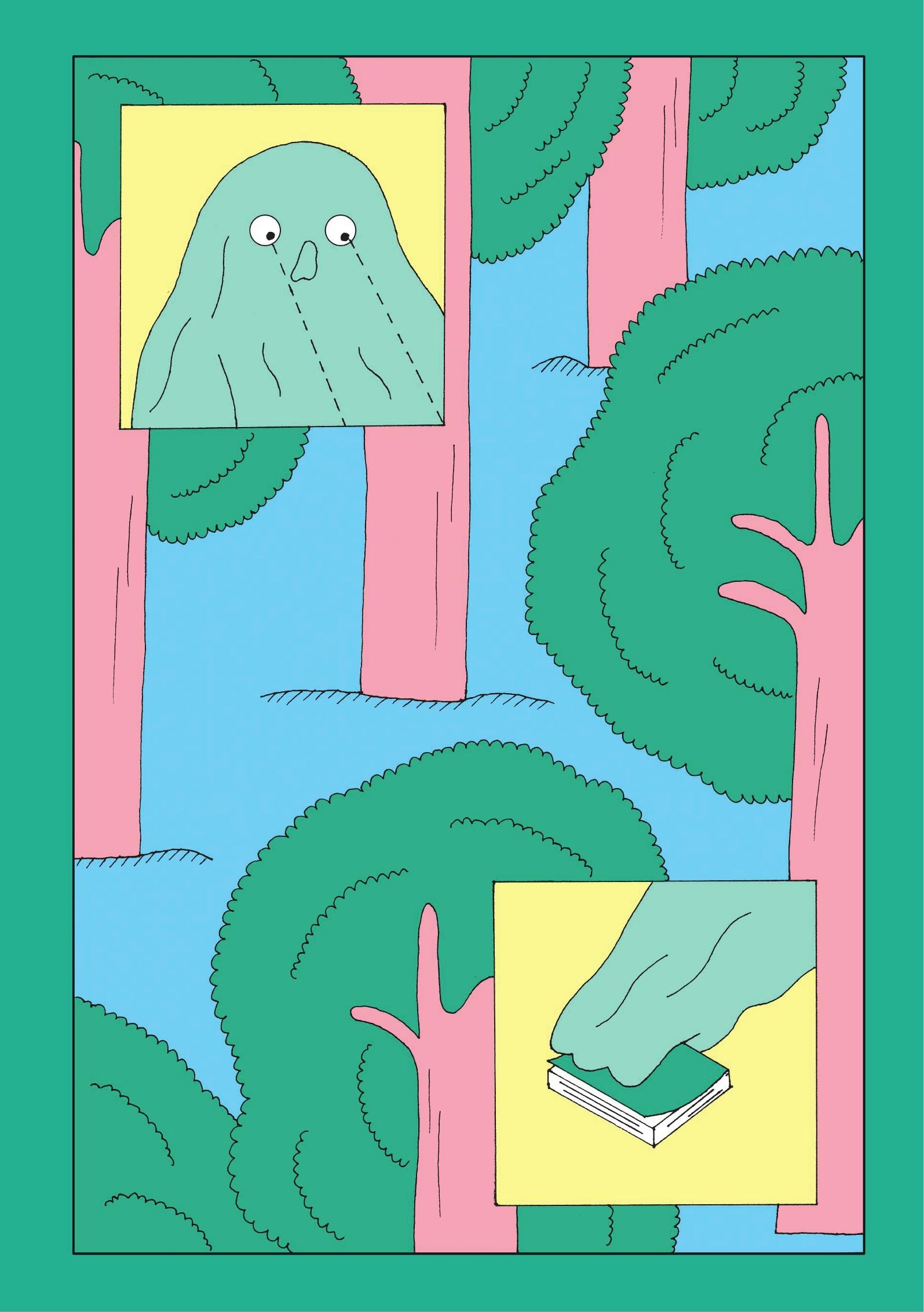 Un randonneur en survetement jaune laisse échapper un livre de son sac. Aussitôt une étrange créateur, sorte de blob à allure de yéti, s’en saisit. Fantastique, c’est un Guide de Survie dans la jungle ! Aussitôt la créature se met à la lecture : et son habileté couplée à son intelligence se met en marche. Interprétant ce manuel des trucs et astuces pour randonneur en déroute, elle se livre à une série d’inventions poétiques, qui de loin dépassent le modèle