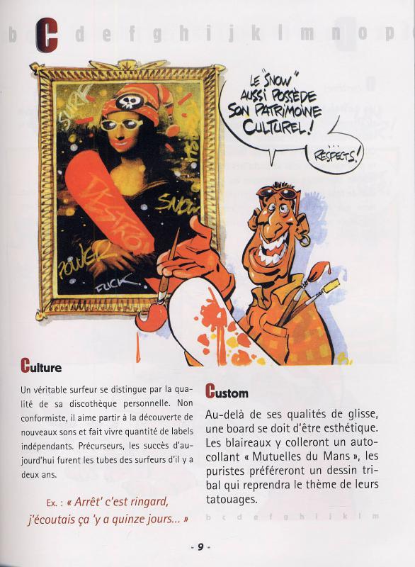 Le Snowboard, c’est quoi ? Un loisir ? Un sport ? Nan, c’est comme le surf, une question de move, sinon c’est pas cool... Et la musique ?... C’est primordial ! Avec un walkman, t’es en communion avec le spirit de la montagne ! Et ça, c’est vraiment cool... La liberté ? L’esprit anticonformiste, le côté rebelle et tout ça ? c’est le Snowboard ! Faut glisser pour comprendre, sinon t’es blaireau...