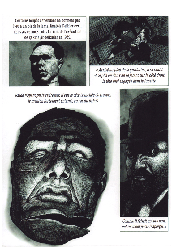 Objet de répulsion et de fascination, symbole de la monarchie décapitée et de notre République naissante, c’est bien l’histoire de cet outil - instrument légal, politique et moral -, que cette bande dessinée propose d’explorer. De 1792 à 1981, cet instrument de torture et de mort, alibi de la barbarie des exécutions, a eu pour première justification d’humaniser le crime d’Etat : en vain
