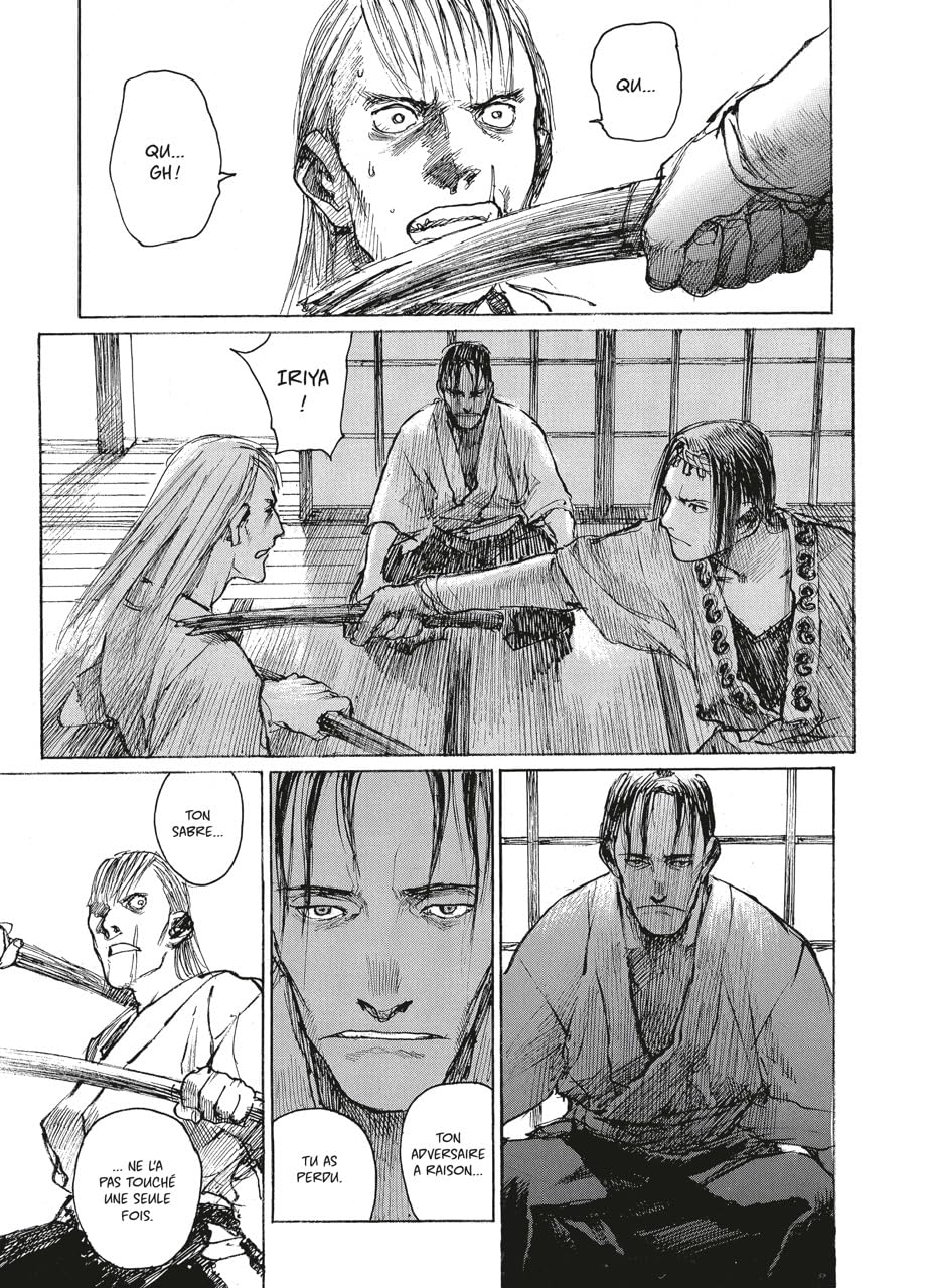 Ce nouveau volume de l’Habitant de l’infini marque un tournant dans la série : principalement focalisé jusqu’ici sur les figures de Manji et Lin, le récit prend maintenant une direction inattendue, plaçant au premier plan des figures jusqu’ici secondaires comme Magatsu, et se doublant d’enjeux politiques. Sollicité par un envoyé du Bakufu - le gouvernement du Shogun -, Anotsu prend la décision d’orienter l’Ittoryû vers une forme de respectabilité, tandis que de nouveaux protagonistes font leur apparition, comme la tueuse aux cheveux clairs Hyakulin, aux motivations pour l’heure insaisissables, et l’on découvre que Manji et Lin sont loin d’être seuls à oeuvrer pour la chute d’Ito Ryu... L’intrigue se complexifie et gagne ainsi en profondeur, abandonnant peu à peu ses partis pris fantastiques d’origine.