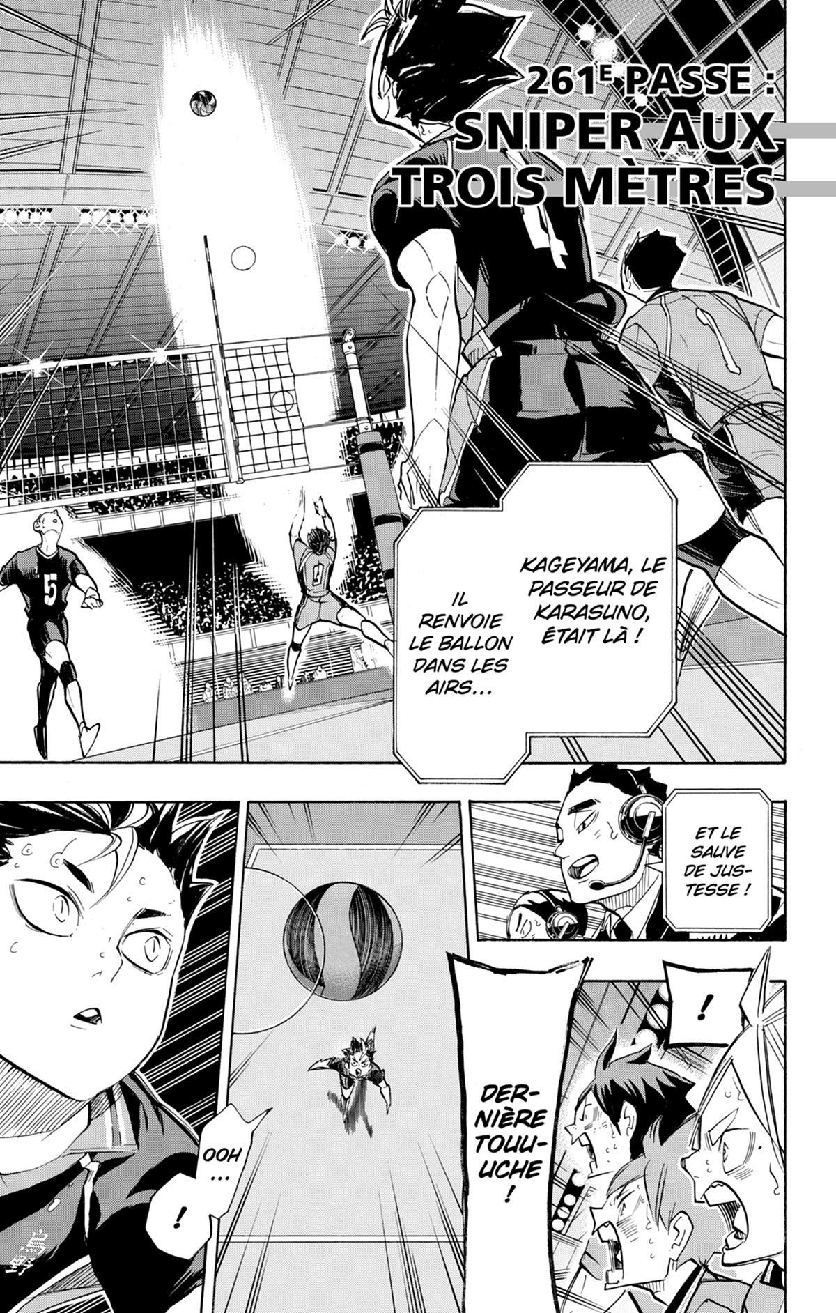Dans le match qui les oppose au « Plus fort des Challengers », les Corbeaux se démènent comme jamais ! Une balle de premier set qui pourrait les aider à rompre l’équilibre d’Inarizaki s’offre même à eux, mais Tanaka, en mal de réussite, est alors pris pour cible ! Face à Suna qui fait monter la pression en enchaînant les contres, l’impétueux ailier de Karasuno se retrouve au pied du mur. Comment va-t-il réagir ?!