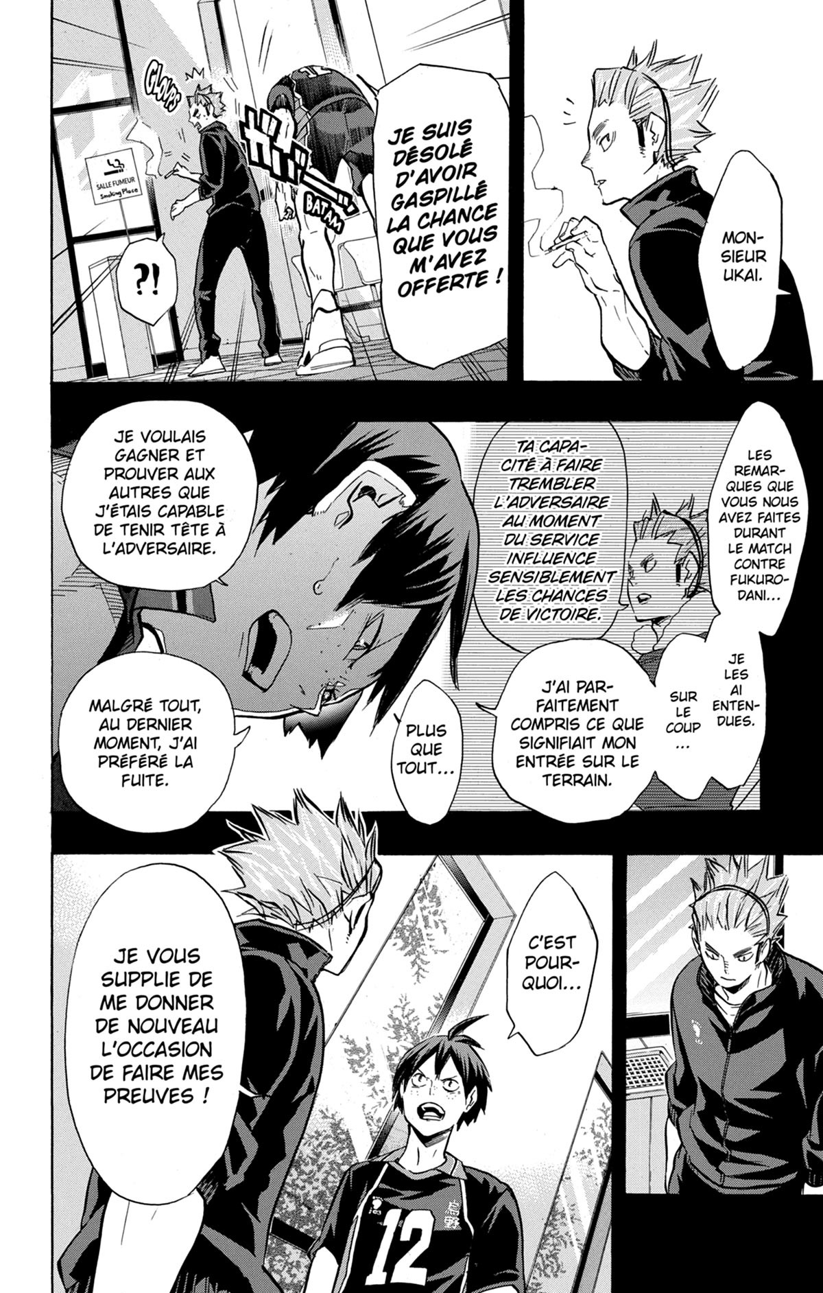 Deuxième set de la demi-finale qui oppose la team de Karasuno à celle d’Aoba Jôsai. Alors qu’Oikawa et ses équipiers voient le match progresser en leur faveur, Karasuno envoie sur le terrain Yamaguchi, son serveur de secours ! Mais ce dernier est toujours tourmenté par son précédent échec... S’il veut faire basculer le match en faveur des Corbeaux, il va devoir surmonter la pression !