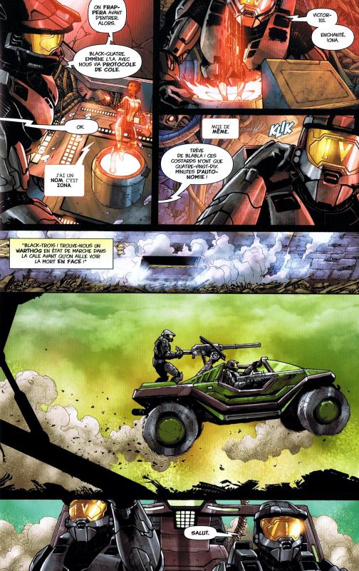 Après le carton plein des deux albums parus en 2011 et consacrés à l’univers de Halo, le célèbre jeu vidéo X-Box, nous vous proposons une nouvelle saga complète se déroulant dans ce richissime univers. Il existe une équipe secrète envoyée par les forces humaines pour des missions de sabotage et d’assassinat en plein coeur du domaine des ennemis extraterrestres. Mais lorsque les quatre supersoldats échouent sur une lune désolée en même temps qu’un vaisseau ennemi, ils risquent bien de devoir faire alliance face à une menace commune vieille de plusieurs siècles ! Fred Van Lente et Francis Portela sont aux commandes !