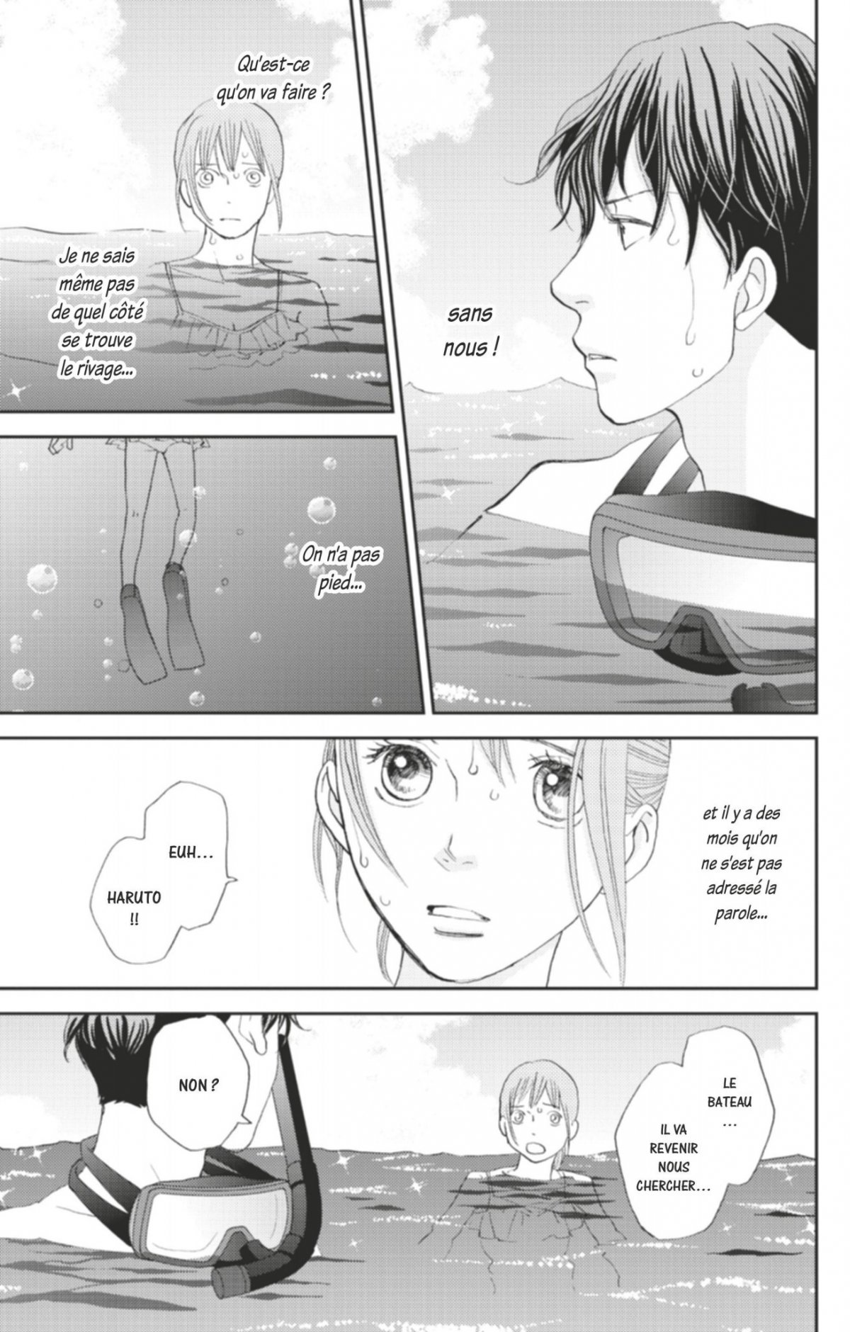Oto et Haruto se retrouvent seuls en pleine mer pendant les cours d’été. En attendant les secours, elle lui confie qu’elle regrette de ne pas avoir pu le rejoindre à Kyoto, et ce dernier se radoucit un peu. Après cette épreuve, Haruto est mis à la porte de chez lui !