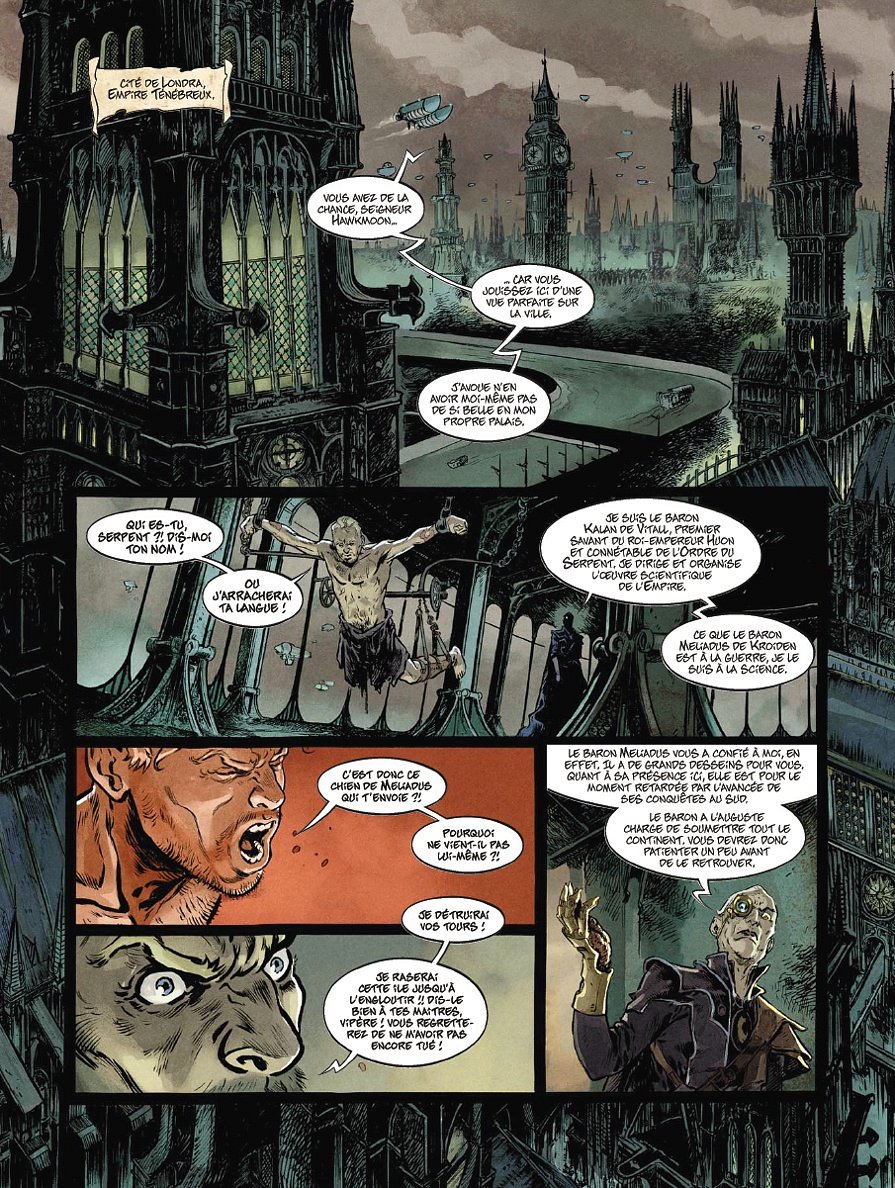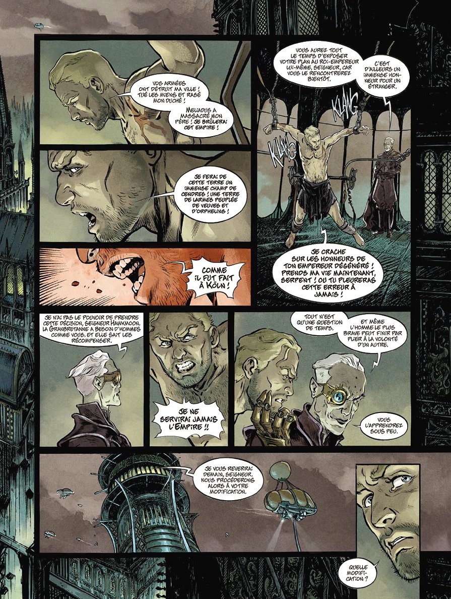 Les Granbretons... ce nom résonne depuis des décennies dans tous les territoires d’une Europe dévastée. Après la chute des derniers grands Etats, le Roi-Empereur dégénéré et ses armées exercent une domination sans partage sur le Vieux Continent. Si le Ténébreux Empire continue d’étendre son pouvoir dans ce monde post-apocalyptique, bientôt nul ne pourra guider les nations de l’Europe vers la liberté. Même la puissante cité de Köln, dernier bastion de la résistance, vient de céder sous les coups de l’ennemi. Son seigneur, le duc Dorian Hawkmoon, victime d’une infâme manipulation technologique dans les noires prisons de Londra pourra-t-il continuer le combat dans l’ombre ? L’unique espoir réside désormais dans le royaume isolé de Kamarg, dirigé par le légendaire comte Airain...