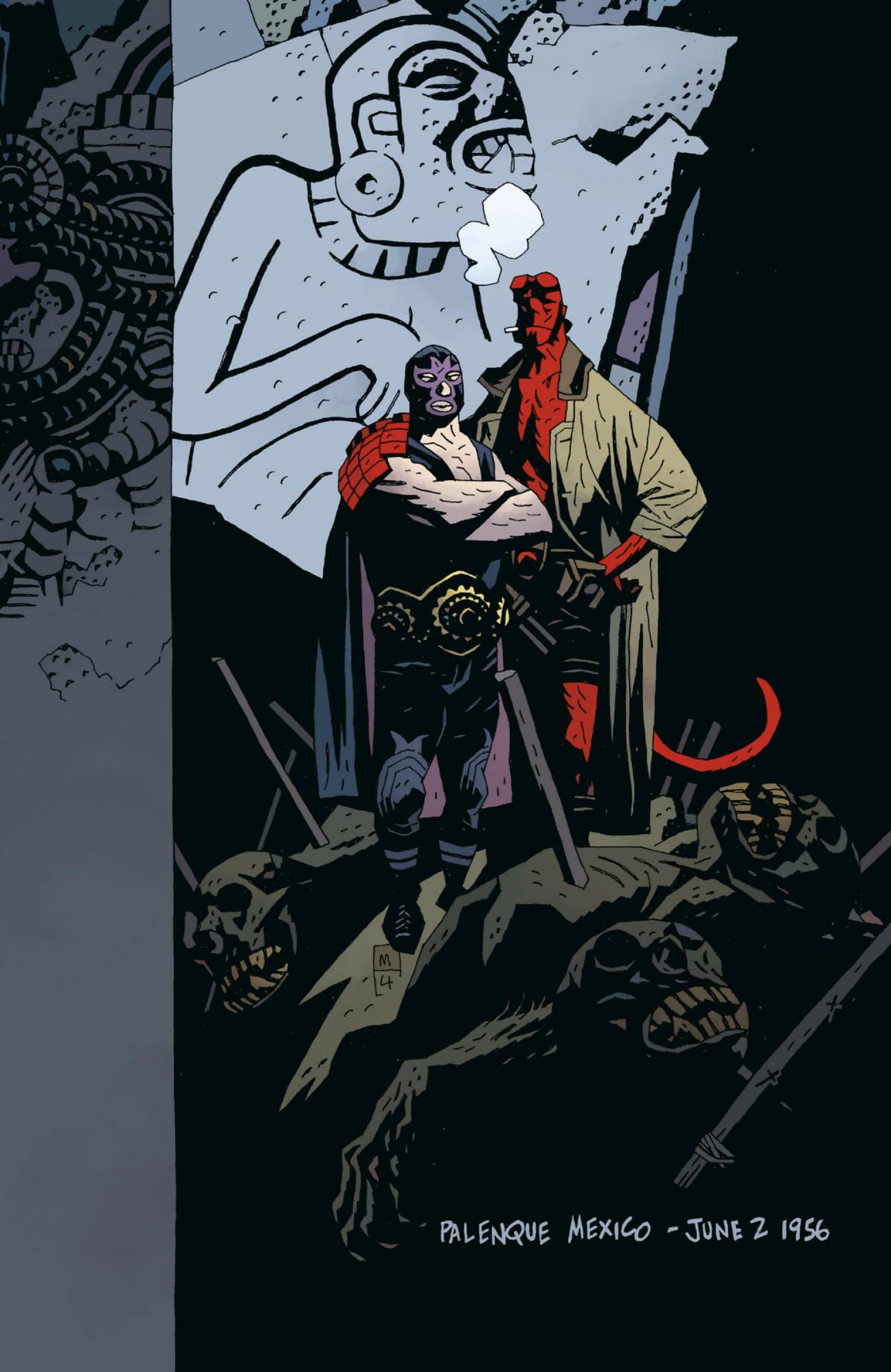 Avant de mourir et d’atterrir au fin fond des Enfers, Hellboy a beaucoup voyagé, en tant que membre du B.P.R.D. ou en solo. En 1956, il enquête au Mexique sur une série de meurtres... et disparaît pendant cinq mois. Il déclara ensuite ne se souvenir de rien. Pourtant, des luchadores chasseurs de vampires, une momie aztèque, des sorcières et des fantômes... et le monstre de Frankenstein croisèrent sa route.