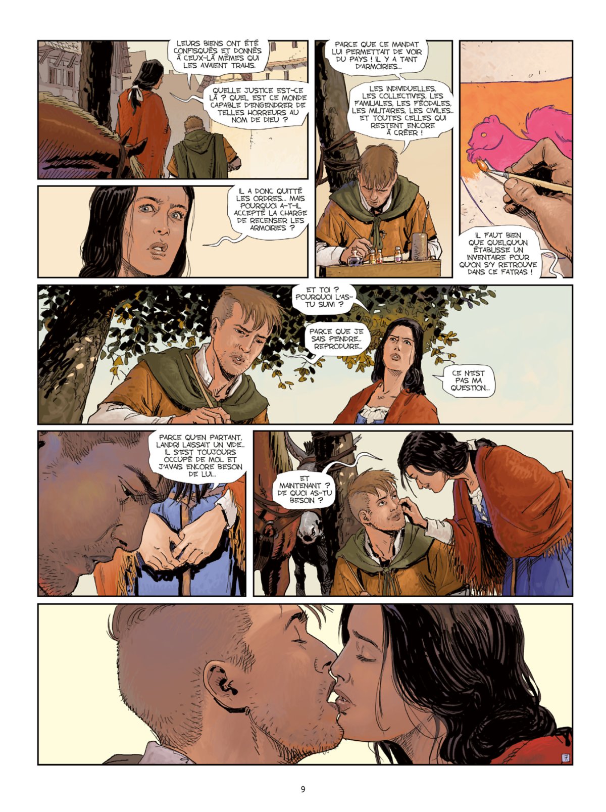 Marie, Mayeul et Landri arrivent dans une nouvelle région où les deux hérauts entendent poursuivre leur oeuvre de recensement des armoiries... Landri accepte d’aider le seigneur local à résoudre un problème : les armoiries de sa famille ont été copiées par un petit seigneur voisin indélicat. En se lançant dans cette enquête, Landri est loin de se douter des révélations qui l’attendent.