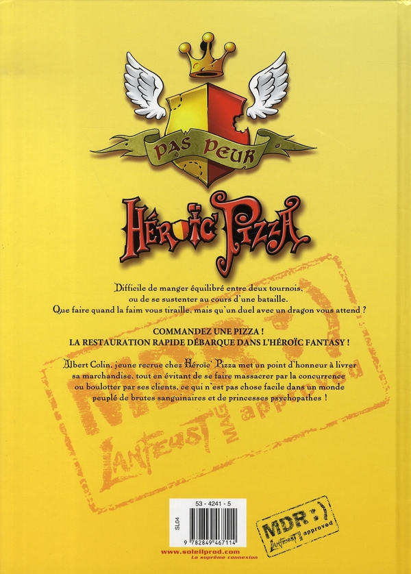Que faire quand la faim vous tiraille, mais qu’un duel avec un dragon vous attend ? Commander une pizza ! La restauration rapide débarque dans l’heroic fantasy ! Mais les pizzaïolos ont bien du mal à rivaliser avec les cuistots trolls et autres nains rôtisseurs qui s’attaquent au marché.