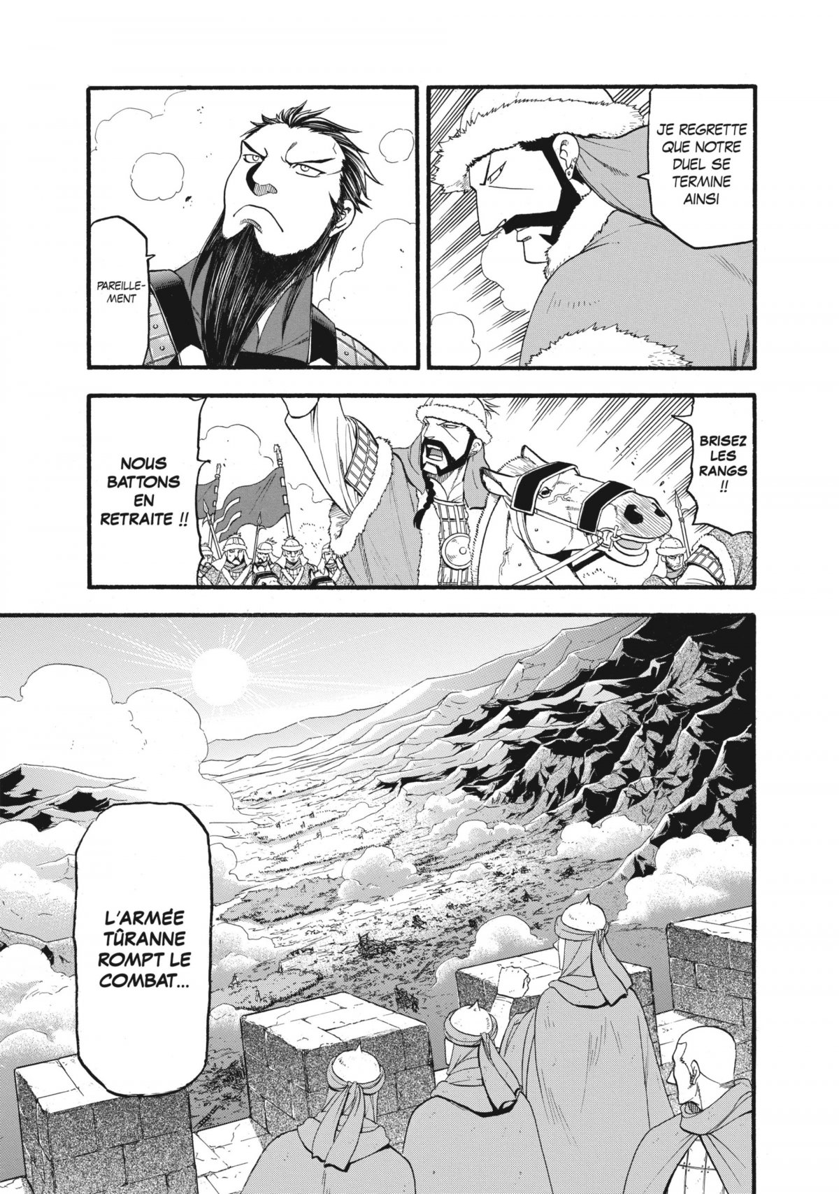 L’armée tûranne compte bien profiter du désordre qui règne au sein du royaume parse pour s’accaparer de nouveaux territoires. Devant à tout prix protéger sa base arrière à Peshawar, le prince Arslân ordonne à ses troupes de faire demi-tour, mettant de côté ses plans de reconquête de la capitale. C’est alors que dans les tréfonds du mont Demavand, une terrible menace est tirée d’un long sommeil...