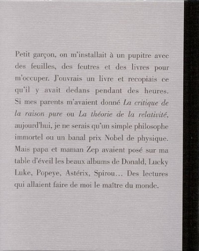 Héros de la bande dessinée (Mes) est un album oneshot de Zep, paru en 2001. Selon nos informations, il n'en existe qu'une seule édition, publiée par Raspoutine.