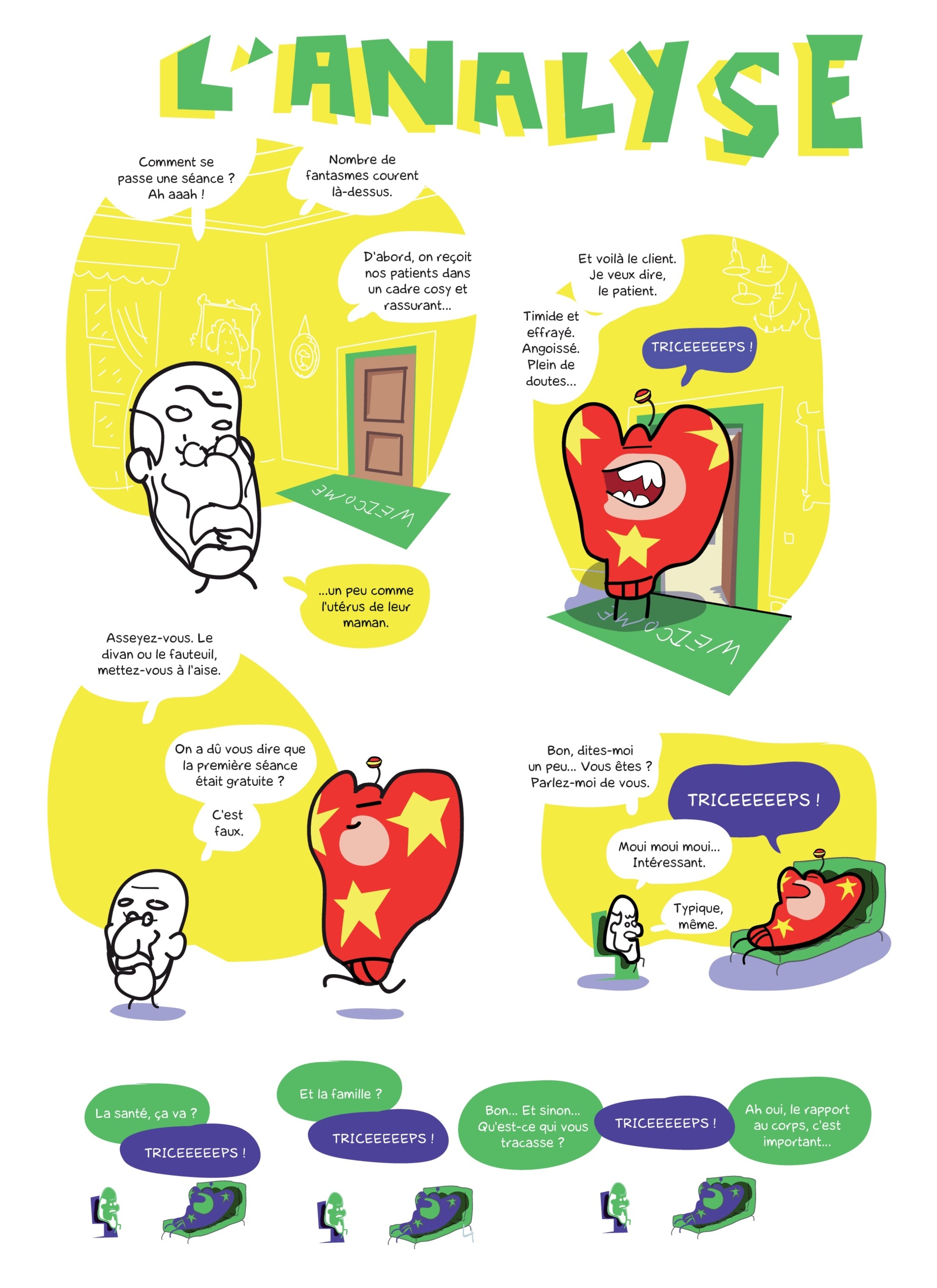 Particularité dans ce tome : un mini-Freud explique au profane les concepts de base de la psychanalyse, dans des planches de BD humoristiques : Qu’est-ce que le test de Rorschach, le transfert, le complexe d’OEdipe ? Pour sortir de là plus calé qu’on y est rentré !