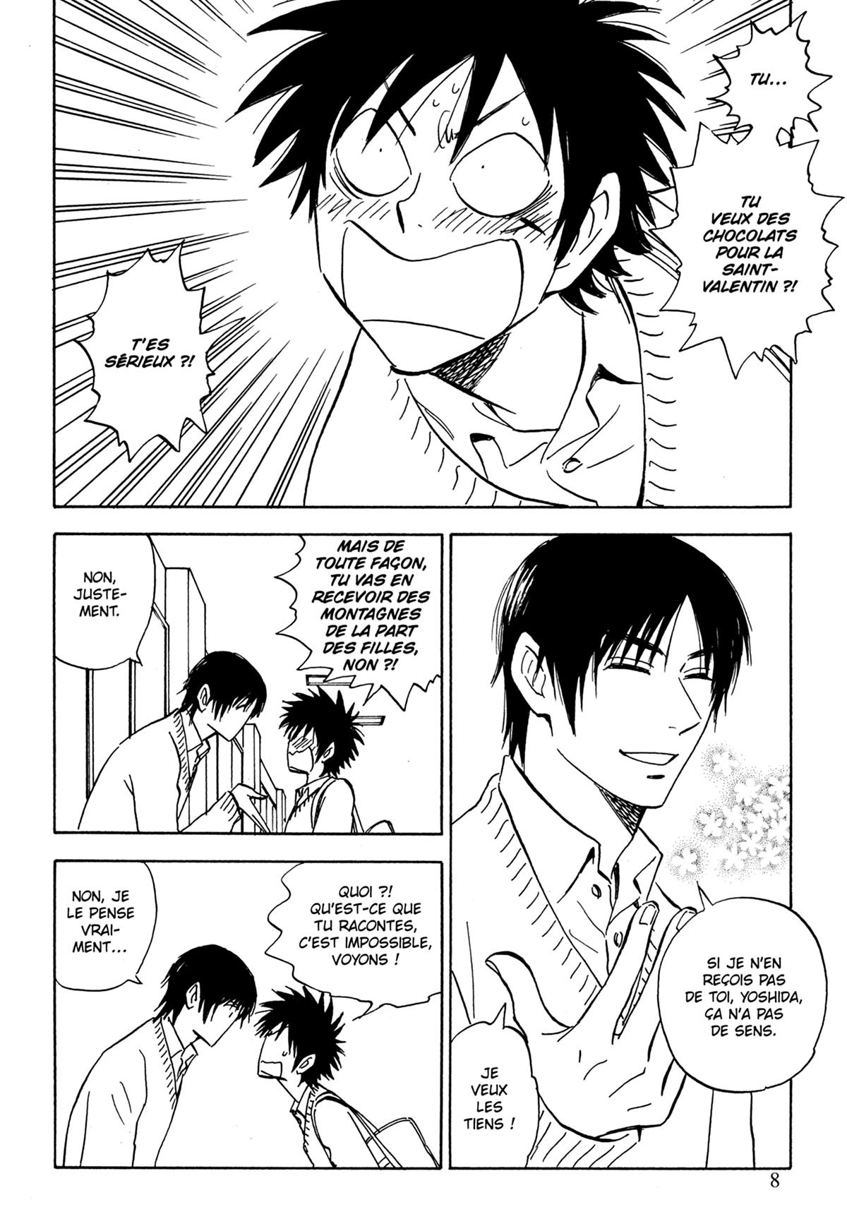 C’est bientôt la Saint-Valentin !! Si l’évènement sème angoisse et excitation parmi les garçons du lycée, Yoshida, lui, est tiraillé par un dilemme : doit-il offrir des chocolats à Satô et se taper la honte en les achetant ou refuser et décevoir son bien-aimé ? De leur côté, les filles, elles, s’apprêtent à sortir le grand jeu pour leur Satô chéri ! Mais c’est alors qu’une fille superbe d’un autre lycée clamant être la petite amie de ce dernier débarque dans la classe et exige d’être la seule et unique personne à lui offrir des chocolats !!