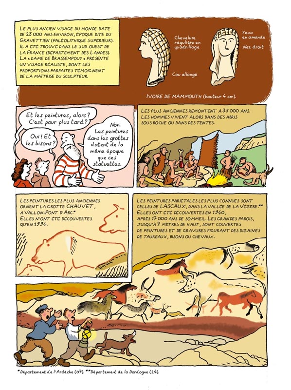 Qu’est-ce que l’Art ? Comment sont nées les premières oeuvres ? Pourquoi certaines ont-elles traversé les siècles, quand d’autres sont tombées dans l’oubli ? Comment vivent et travaillent leurs créateurs ? Précise, vivante, impeccablement documentée, mise en scène avec bonheur par Bruno Heitz, L’Histoire de l’Art en BD propose un immense voyage dans le temps, à la découverte de la création artistique, de ses oeuvres et ses auteurs, peintres, sculpteurs et architectes. Ce premier tome aborde chronologiquement : La Préhistoire (les peintures rupestres, les mégalithes), L’Egypte, La Grèce et la Rome antiques, Le Moyen Âge (les cathédrales) et les débuts de la Renaissance en Italie (Giotto, Botticelli...).