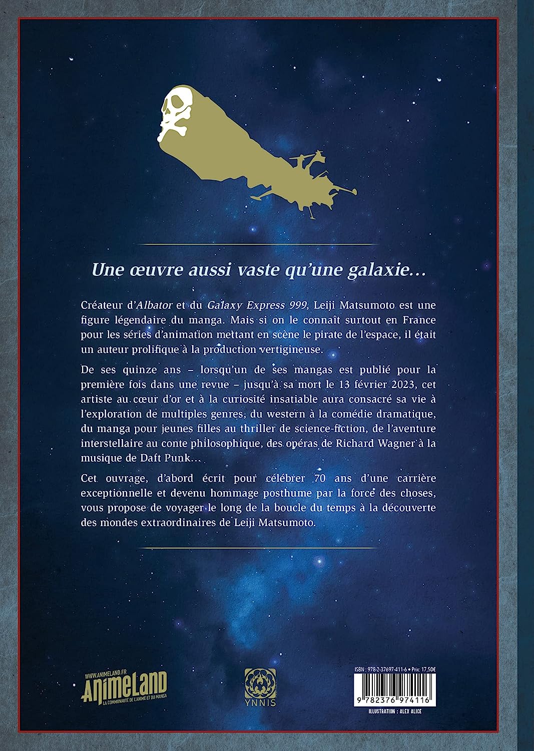 Cet ouvrage, d’abord écrit pour célébrer 70 ans d’une carrière exceptionnelle et devenu hommage posthume par la force des choses, vous propose de voyager le long de la boucle du temps à la découverte des mondes extraordinaires de Leiji Matsumoto.