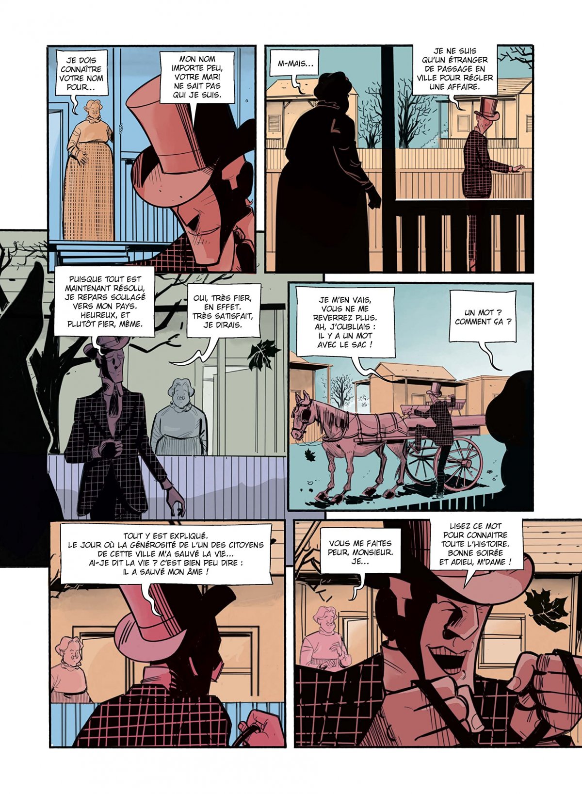 Cet étranger a décidé de porter le fer là où cela leur ferait le plus mal : en faisant voler en éclat leur réputation de probité... Prétendant venir récompenser la personne qui lui porta secours quand il était sans le sou, l’inconnu confie à un des plus honorables habitants une lettre ainsi qu’un sac contenant 40 000 dollars ainsi qu’une enveloppe à ne pas ouvrir. La lettre précise que l’argent est à remettre à ce fameux bienfaiteur dont le nom n’est pas mentionné. Celui-ci se fera connaître en révélant la phrase qu’il avait dite à l’époque à l’indigent et consignée dans l’enveloppe scellée
