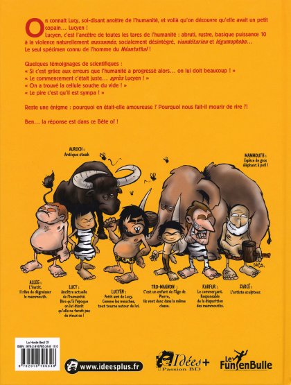 Best à massue ! On connaît Lucy, soi-disant ancêtre de l’humanité, et voilà qu’on découvre qu’elle avait un petit copain... Lucyen ! Lucyen, c’est l’ancêtre de toutes les tares de l’humanité : abruti, rustre, basique puissance 10 à la violence naturellement massumée, socialement désintégré, viandétarien et légumophobe... Le seul spécimen connu de l’homme du Néantothal ! Quelques témoignages de scientifiques : « Si c’est grâce aux erreurs que l’humanité a progressé alors... on lui doit beaucoup ! » « Le commencement c’était juste... après Lucyen ! » « On a trouvé la cellule souche du vide ! » « Le pire c’est qu’il est sympa ! » Reste une énigme : pourquoi en était-elle amoureuse ? Pourquoi nous fait-il mourir de rire ?! Ben... la réponse est dans ce Bête of !