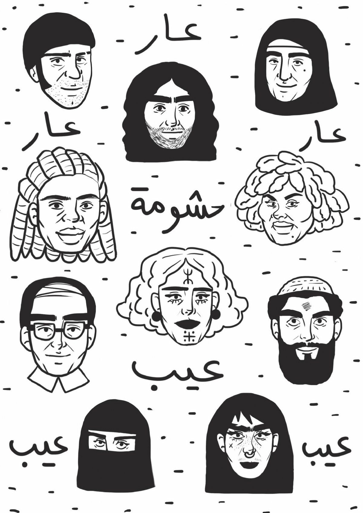 Hshouma, signifie « honte » en dialecte marocain. Plus précisément, ce mot désigne l’ensemble des sujets tabous que l’on ne doit pas aborder en société ou en famille. Mi-projet artistique, mi-initiative éducative, cette bande dessinée se veut une tentative d’ébrécher les tabous liés au genre, à l’éducation sexuelle, aux violences faites aux femmes. Les femmes dessinées par Zainab Fasiki peuvent sembler provocantes et fatales, parfois même sarcastiques. Nues, en lingerie ou portant le voile, en ville ou au hammam, elles se moquent d’un masculisme hypocrite et effrayé par les corps, faisant ainsi fi des canons de beauté imposés par les autres. Ces dessins sont ainsi autant de manières de célébrer les corps et leur beauté, mettant à mal un des piliers sur lequel repose nos sociétés patriarcales, autant au Maroc qu’en Europe. Outre la beauté du trait, Hshouma est un livre important, qui milite pour la libération de la femme dans le monde arabe.