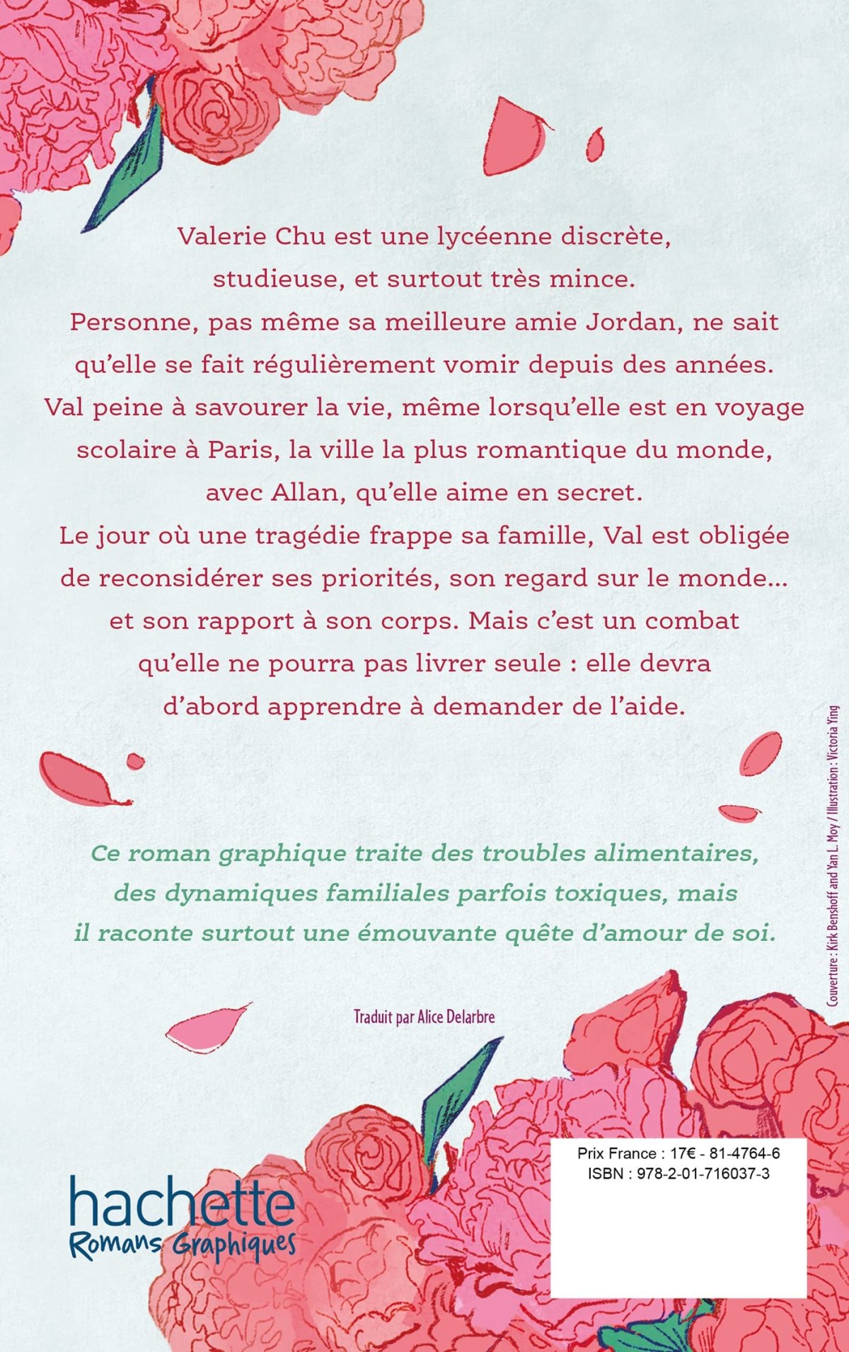Valerie Chu est une lycéenne discrète, studieuse, et surtout très mince. Personne, pas même sa meilleure amie Jordan, ne sait qu’elle se fait régulièrement vomir depuis des années. Val peine à savourer la vie, même lorsqu’elle est en voyag