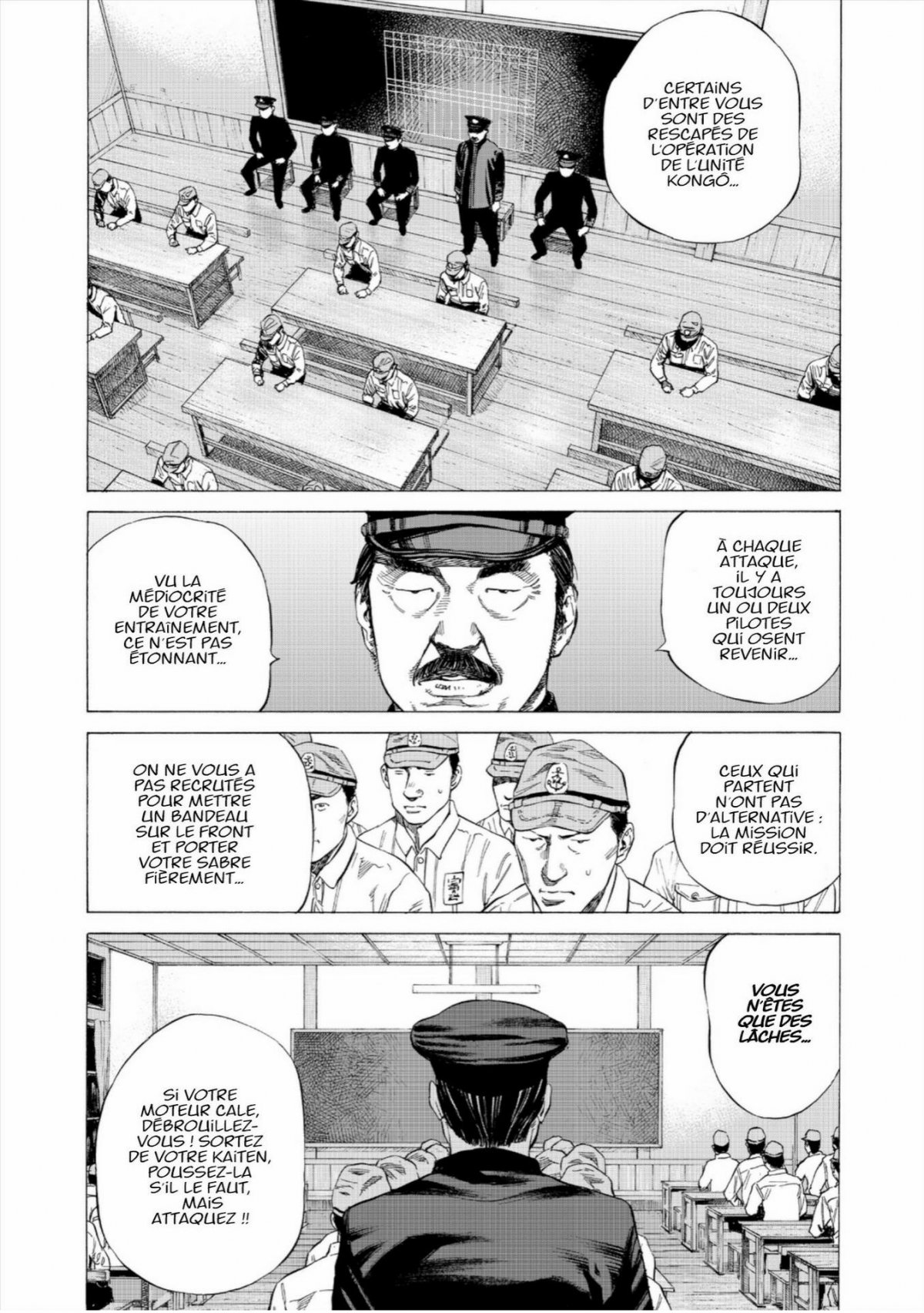 Watanabe a participé à une opération kaiten, mais en raison d’une avarie, il n’a pas pu aller au bout de sa mission, et il a dû regagner le sous-marin. Alors qu’il demande à faire partie de la prochaine offensive, le capitaine Sakakura le lui refuse. Watanabe reçoit l’ordre de laisser sa place ! Alors qu’il ne sait plus où il en est, les officiers de l’état-major ont des mots très durs à son encontre...