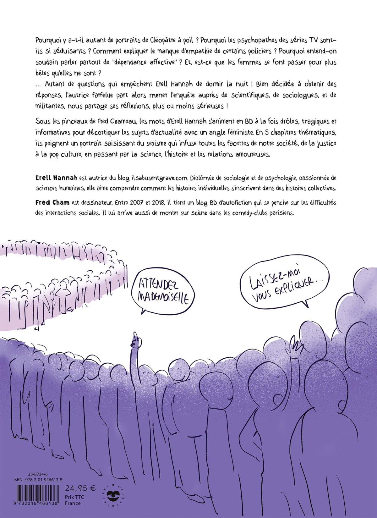 ... Autant de questions qui empêchent Erell Hannah de dormir la nuit ! Bien décidée à obtenir des réponses, l’autrice farfelue part alors mener l’enquête auprès de scientifiques, de sociologues, et de militantes, et nous partage ses réflexions, plus ou moins sérieuses !
