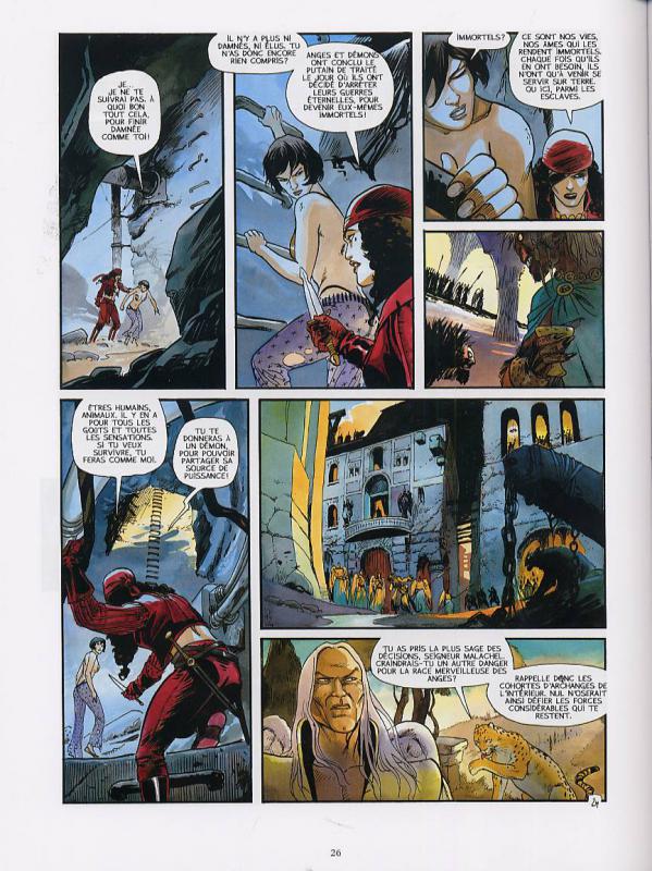 Le désespoir guette l’ange Nahel : en pensant sauver Rio, sa bien-aimée, en l’amenant au Paradis, il n’a fait qu’accélérer sa chute et celle de tout le Royaume des Cieux ! Pire, Ashra, son épouse promise, est morte terrassée par la jalousie... et la main de Nahel. Le courroux de Malachel les poursuit inflexiblement. De toute part menacé, le couple impossible de l’ange immortel et de l’humaine fragile a accompli un voyage sans retour...jusqu’en Enfer. Et là, le démon Mar Chequenna, leur implacable Némésis, assène à un Nahel enchaîné une vérité insoutenable. Rio et l’ange ont été les instruments d’une immense machination visant à déstabiliser la trêve précaire entre les Anges et des Démons. Alors que Rio tente d’échapper à la mort, noyée dans les immondices des égouts infernaux, la guerre entre l’Enfer et le Paradis semble inévitable... Les Immortels possèdent le souffle épique des grandes sagas. Mêlant avec une grande maestria fresques fabuleuses et amour dramatique, Stéphane Desberg tisse une intrigue aux reflets chatoyants. Henri Reculé, grâce à ses planches en couleurs directes, affirme d’album en album un talent rare.