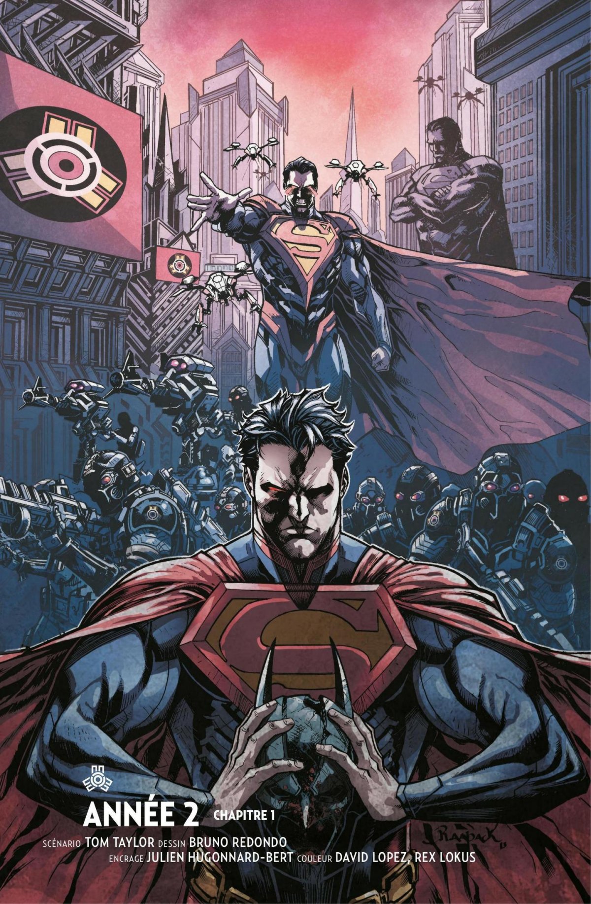 Injustice Année 2 - 1ère partie est le volume 3 de la série Injustice par Tom Taylor, Saleem Crawford, Julien Hugonnard-Bert, Mike S. Miller et Bruno Redondo, paru en 2015. Selon nos informations, il n'en existe qu'une seule édition, publiée par Urban Comics.